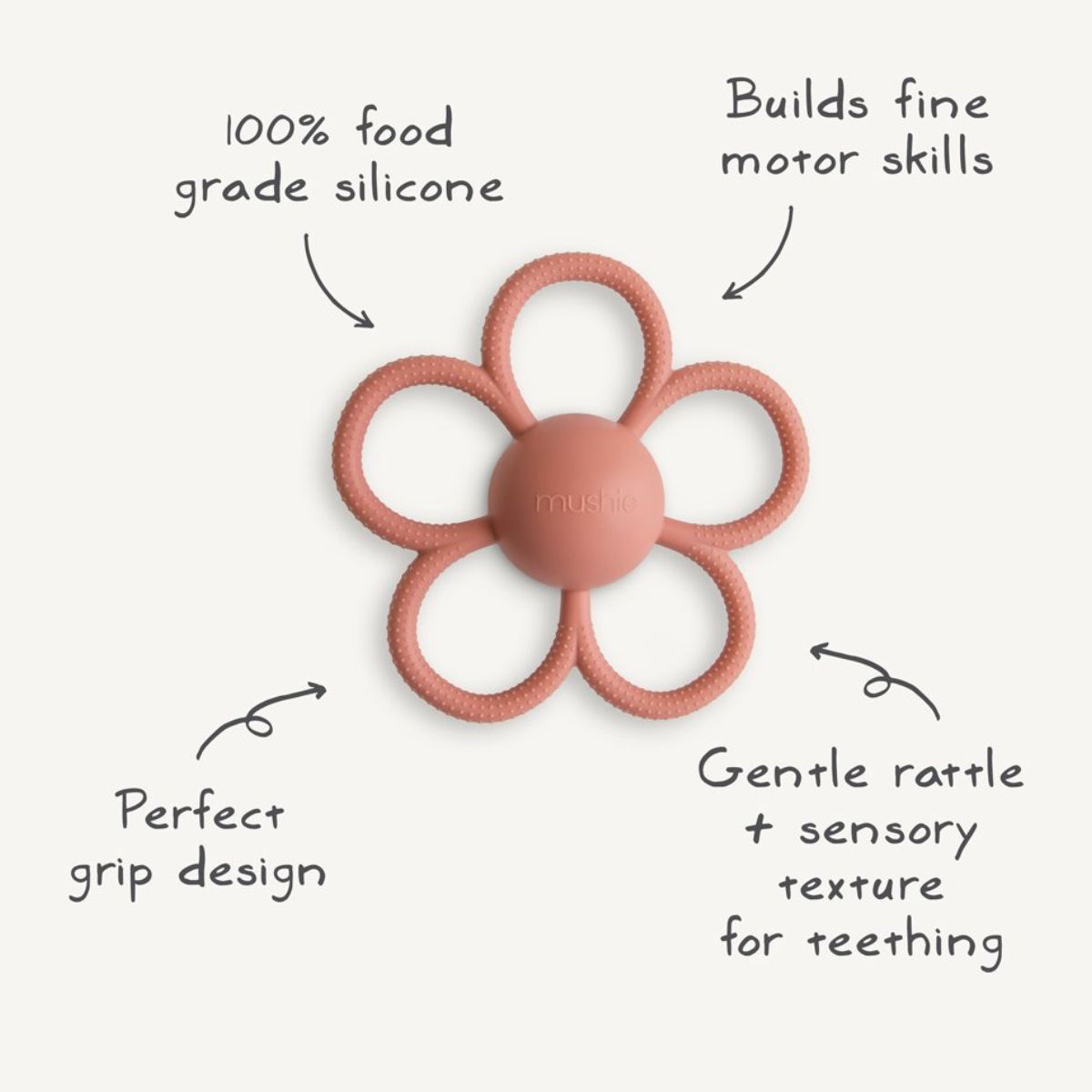 • Daisy Rattle Teether – Soft Lilac