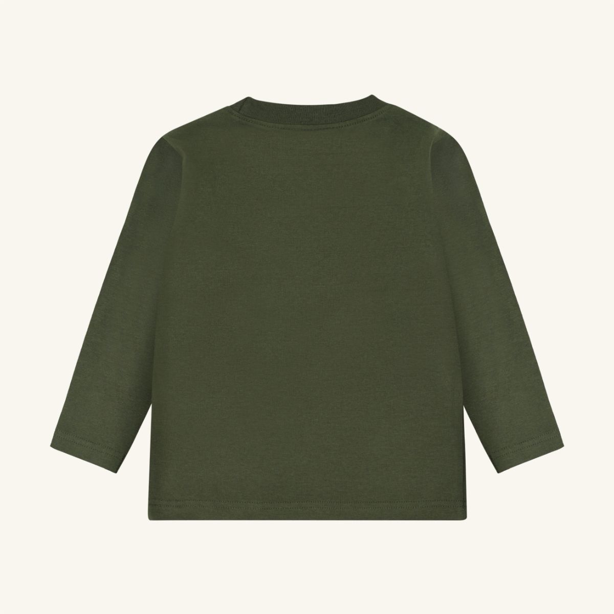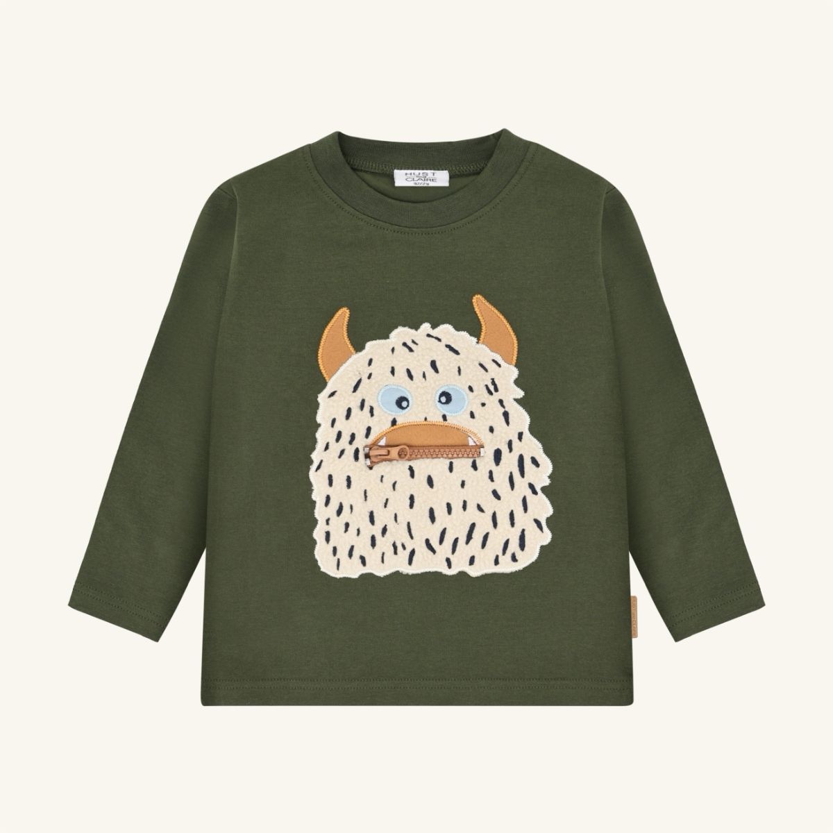 Charming blouse from Hust and Claire with long sleeves in a deep green colour. The front of the blouse is decorated with a fun monster face with a plush texture that adds a playful detail, and the mouth is a zipper that opens to a little pocket. The Blouse has a round neckline and is made with soft material that is comfortable against the skin. Hust and Claire ensures a stylish look with a creative twist.