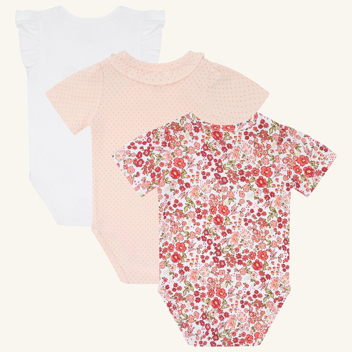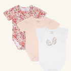 A lovely 3-pack of short-sleeved bodystockings in soft stretch cotton.