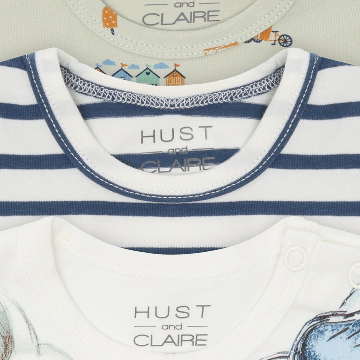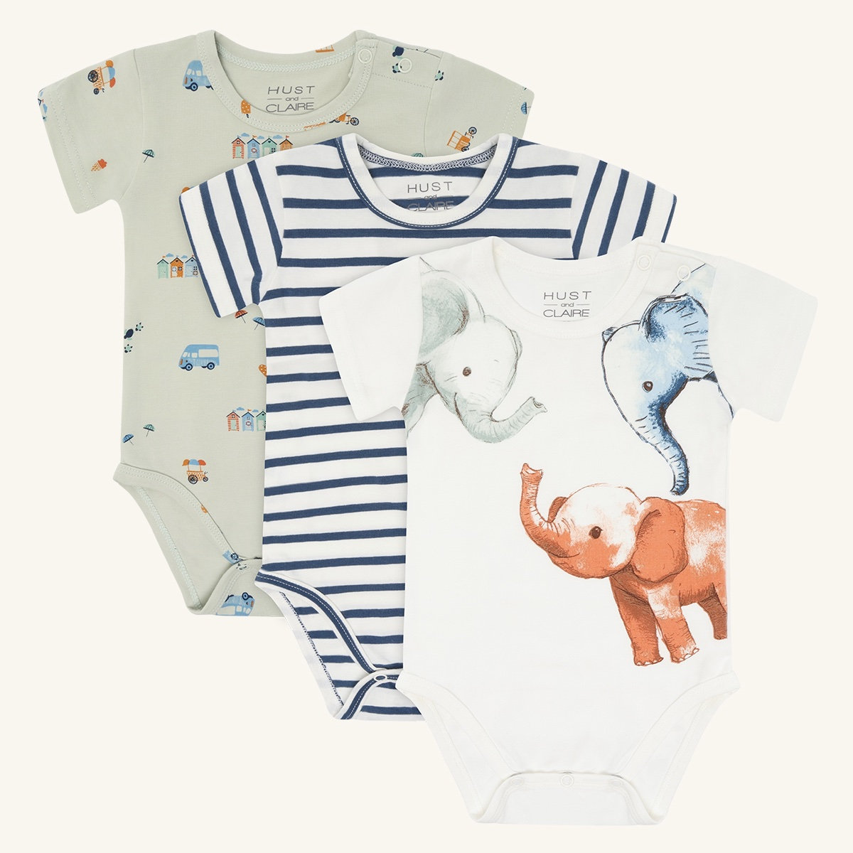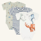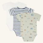 3-pack with short- sleeved bodysuits in 3 different designs.