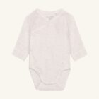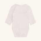 Long sleeveless bodysuit in soft, stretchy cotton with a lace pattern. The garment has a wrap-around closure on the right side and buttons between the legs.
