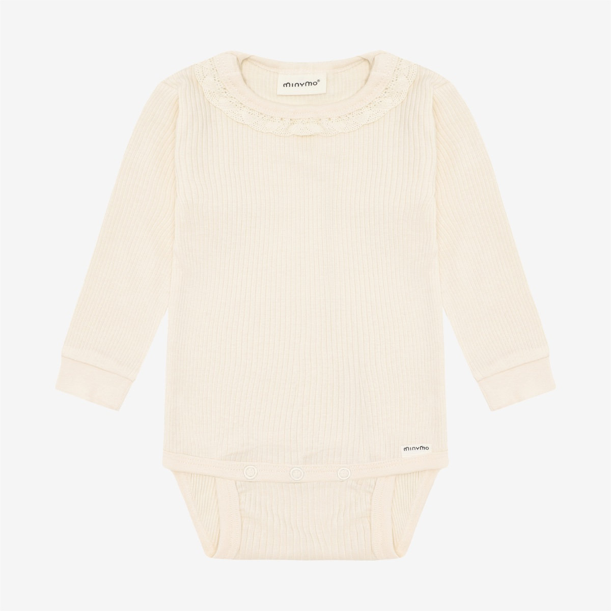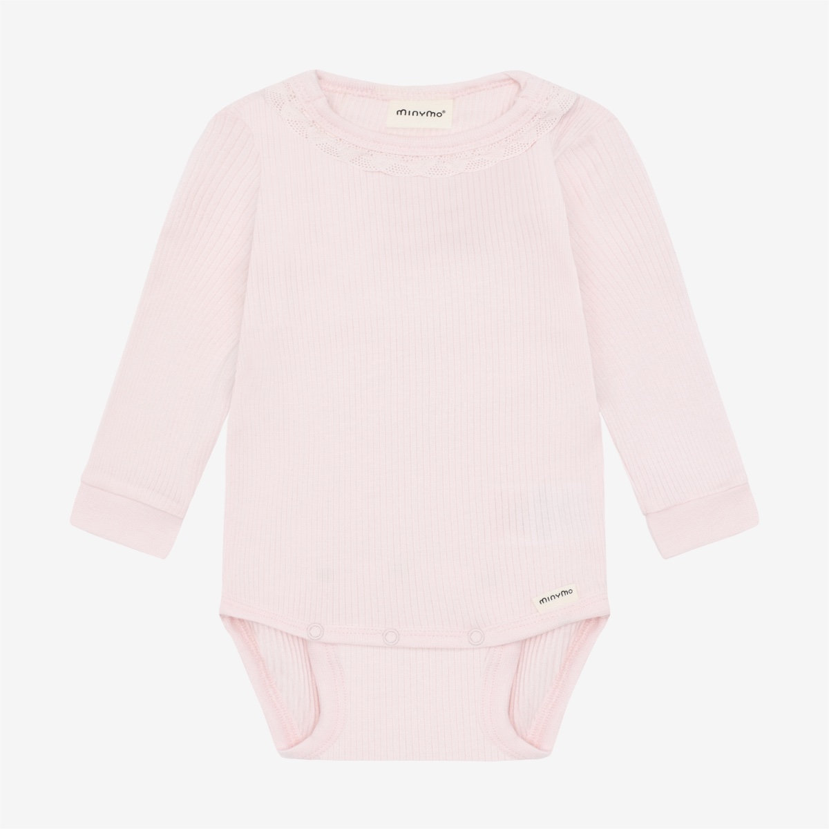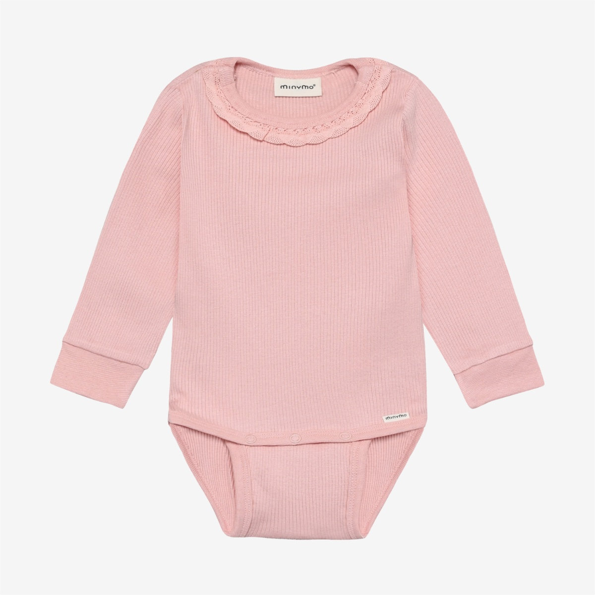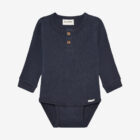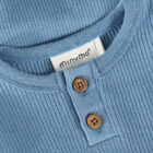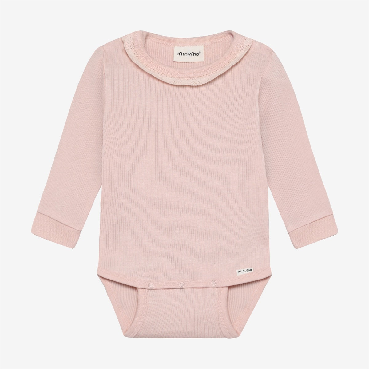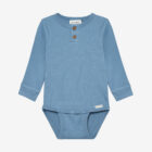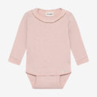 Solid-colored bodysuit from Minymo. The bodysuit is made from a ribbed fabric consisting of a modal and cotton blend. It closes with snap buttons between the legs, positioned in two different places, allowing the bodysuit to grow with the child. This product contains TENCEL™ fibers. TENCEL™ is a trademark of Lenzing AG