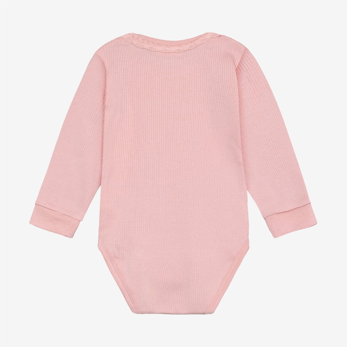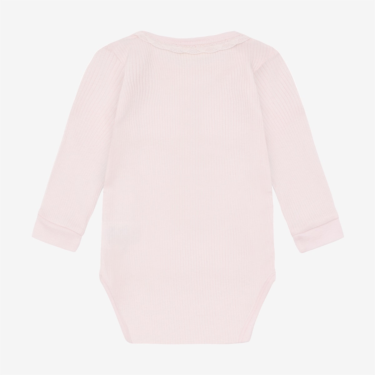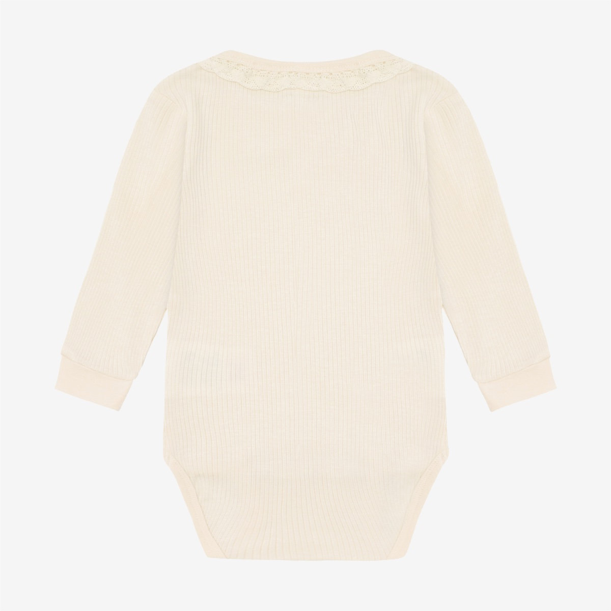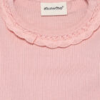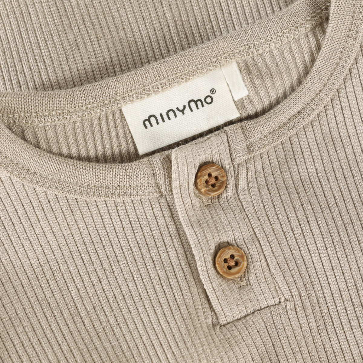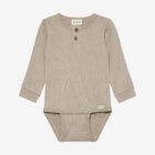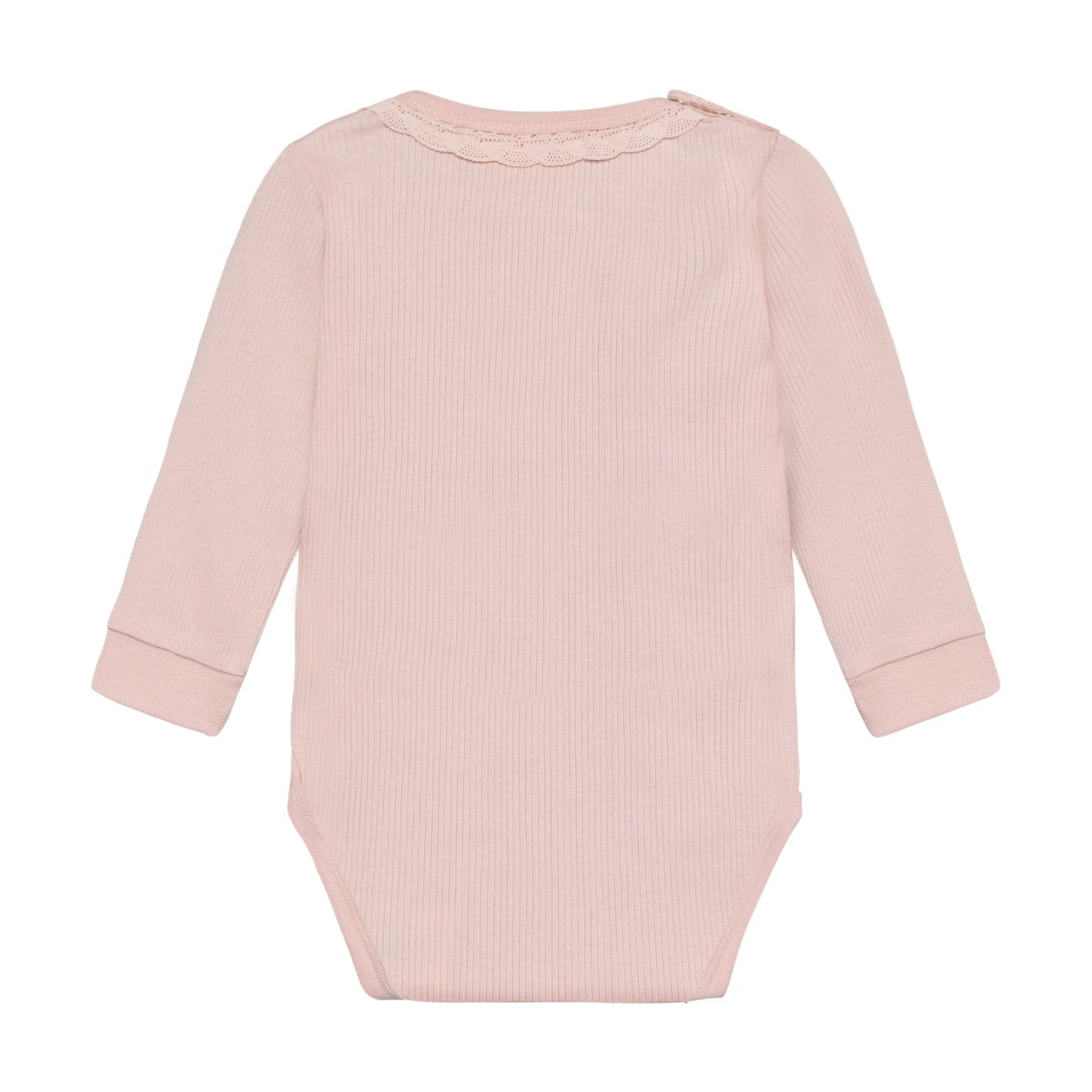 Solid-colored bodysuit from Minymo. The bodysuit is made from a ribbed fabric consisting of a modal and cotton blend. It closes with snap buttons between the legs, positioned in two different places, allowing the bodysuit to grow with the child. This product contains TENCEL™ fibers. TENCEL™ is a trademark of Lenzing AG