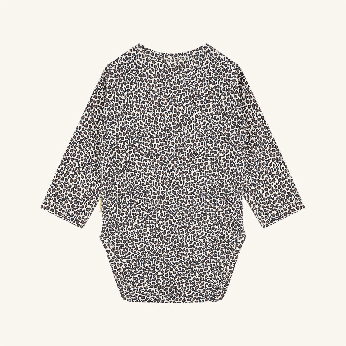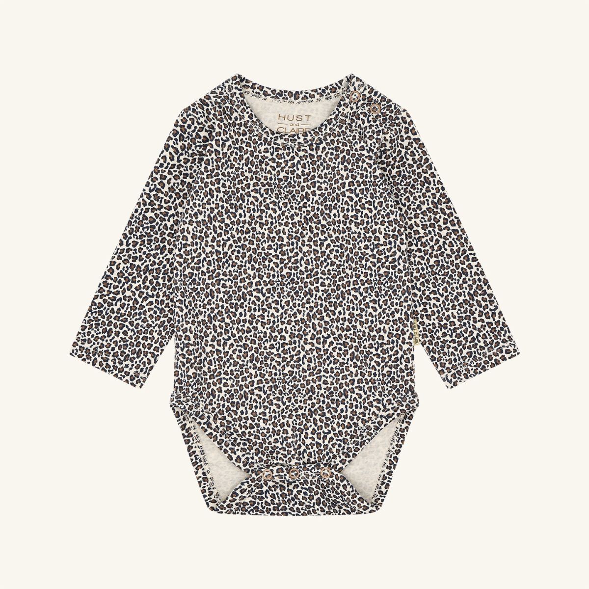 Beautiful Hust and Claire bodysuit with an exciting leopard pattern in brownish shades. This bodysuit has long sleeves and a round neckline, which gives a stylish look. Hust and Claire has designed the bodysuit with practical push buttons at the bottom, which makes it easy to open and close. The bodysuit’s fit is accentuated by soft edges at the sleeves and bottom. With its eye-catching pattern, the bodysuit is both a functional and aesthetic addition to any wardrobe.