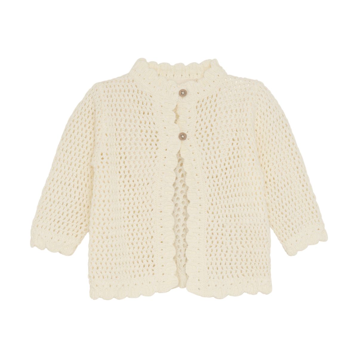 Nice plain cardigan from Minymo. The cardigan is knitted in 100% cotton, which feels comfortable on the skin. The cardigan has a fine knit pattern and closes with buttons at the front.