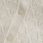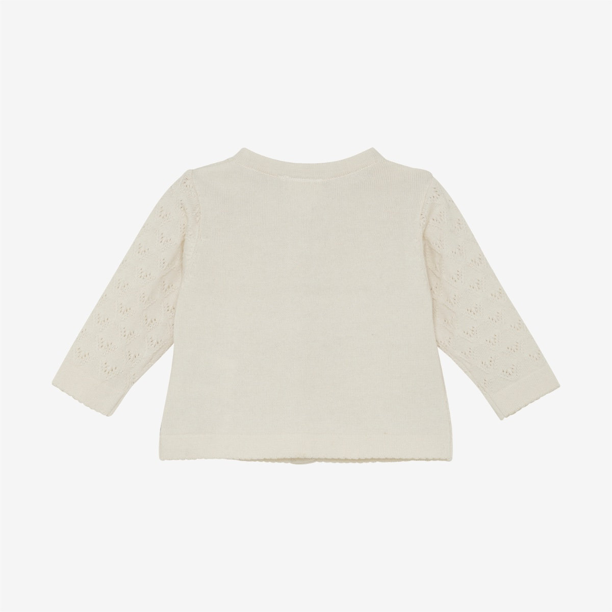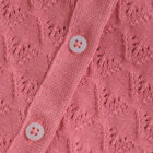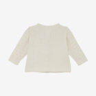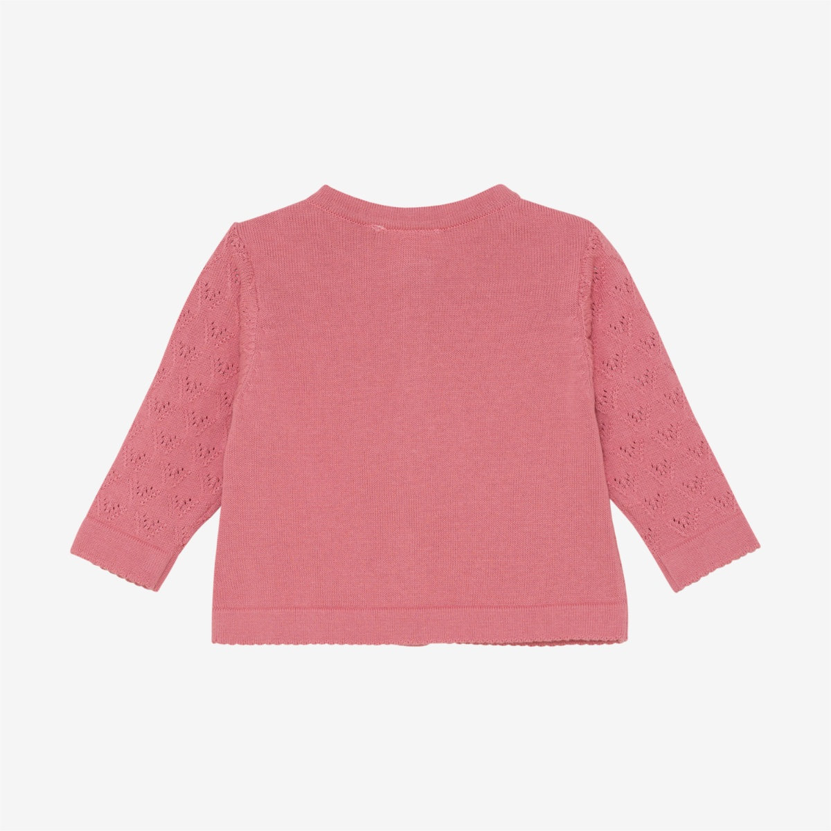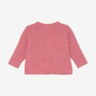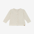 Cardigan from Minymo. The cardigan has a knitted, solid-colored pattern. It features buttons all the way down the front. Additionally, the edges are detailed. The cardigan is made of 100% cotton. Certified acc. to GOTS – organic CERES-0366