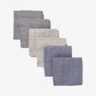 6-pack muslin cloths made of cotton. The pack contains only solid-colored muslin cloths.