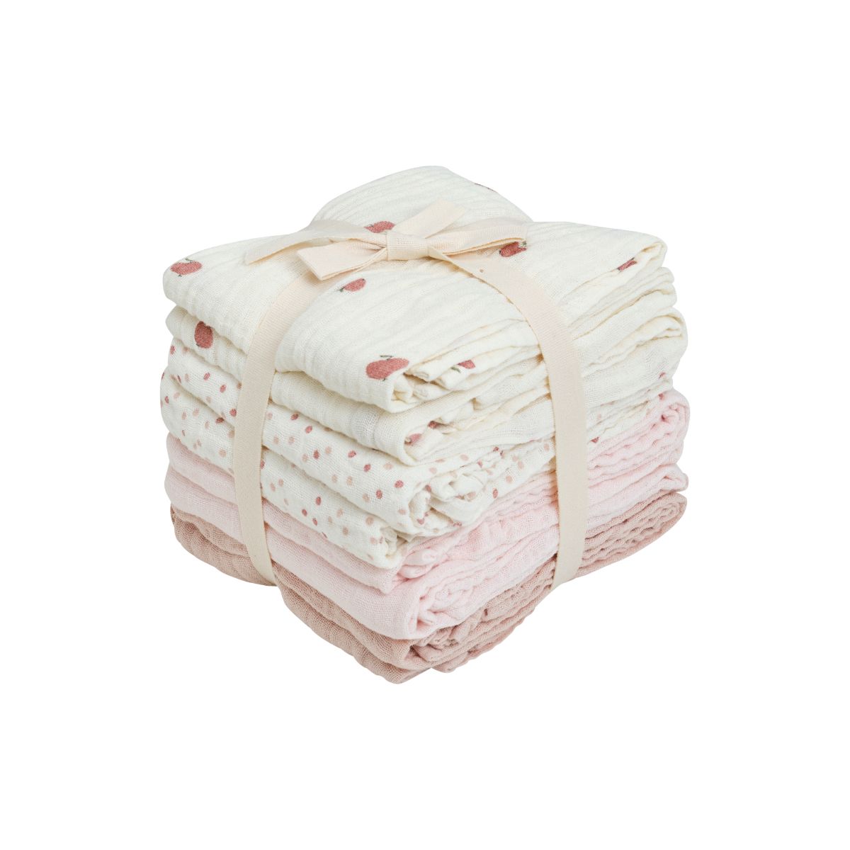 8-pack of soft muslin cloths. The pack contains 2 different colors and 2 different prints.