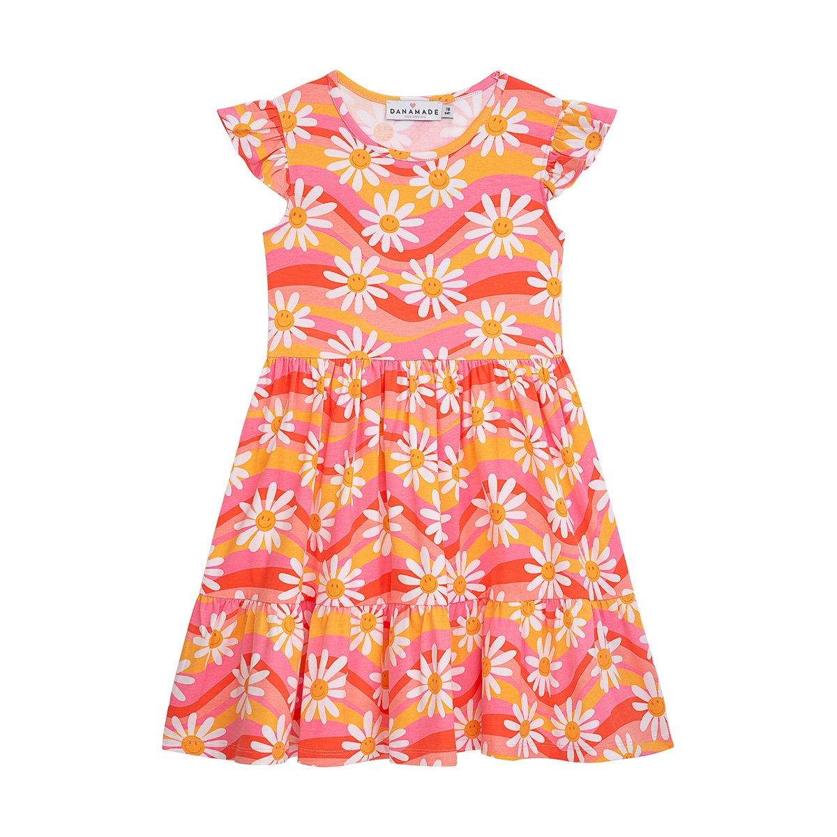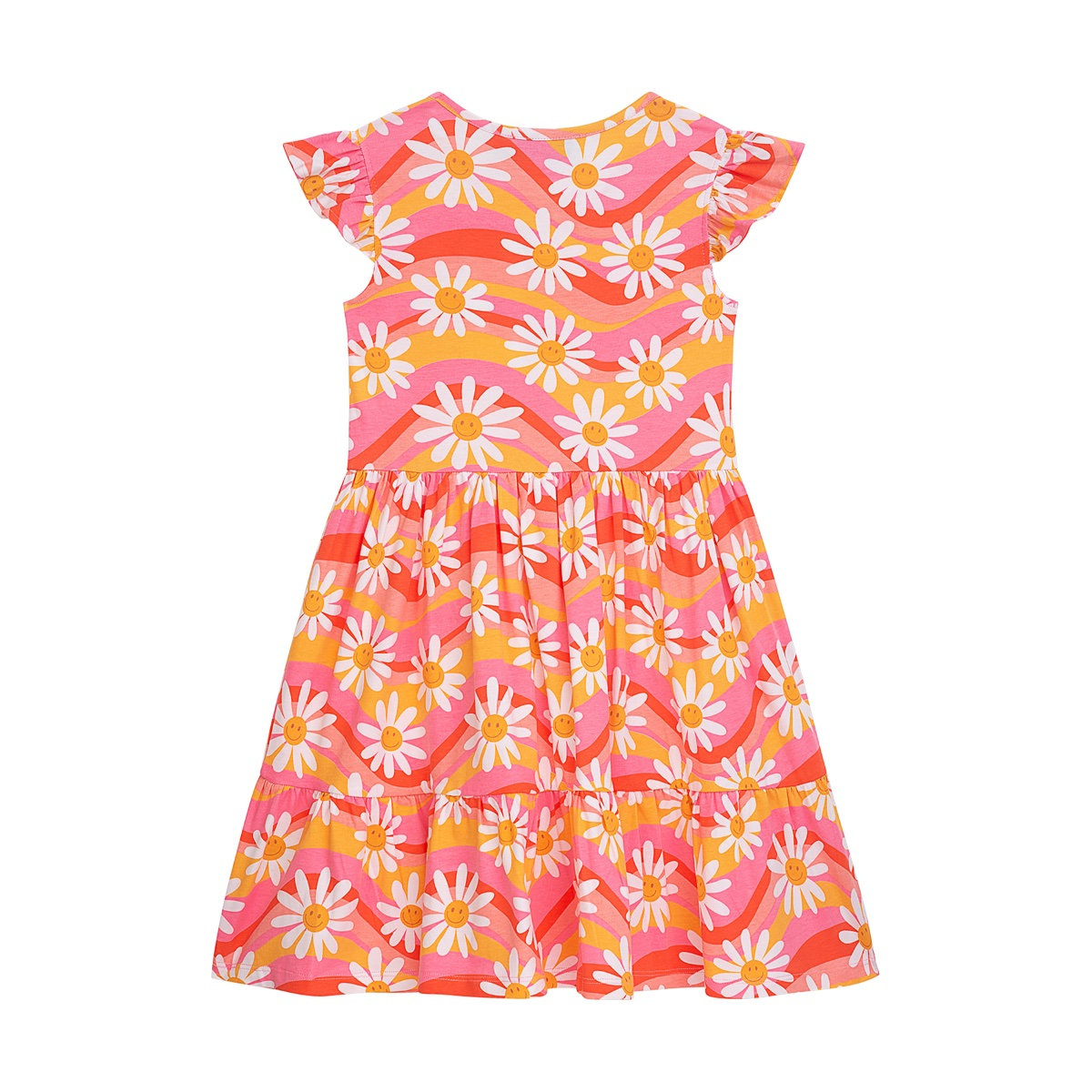 This comfortable jersey dress with its daisy pattern and delicate ruffled sleeves is the perfect companion for everyday life.