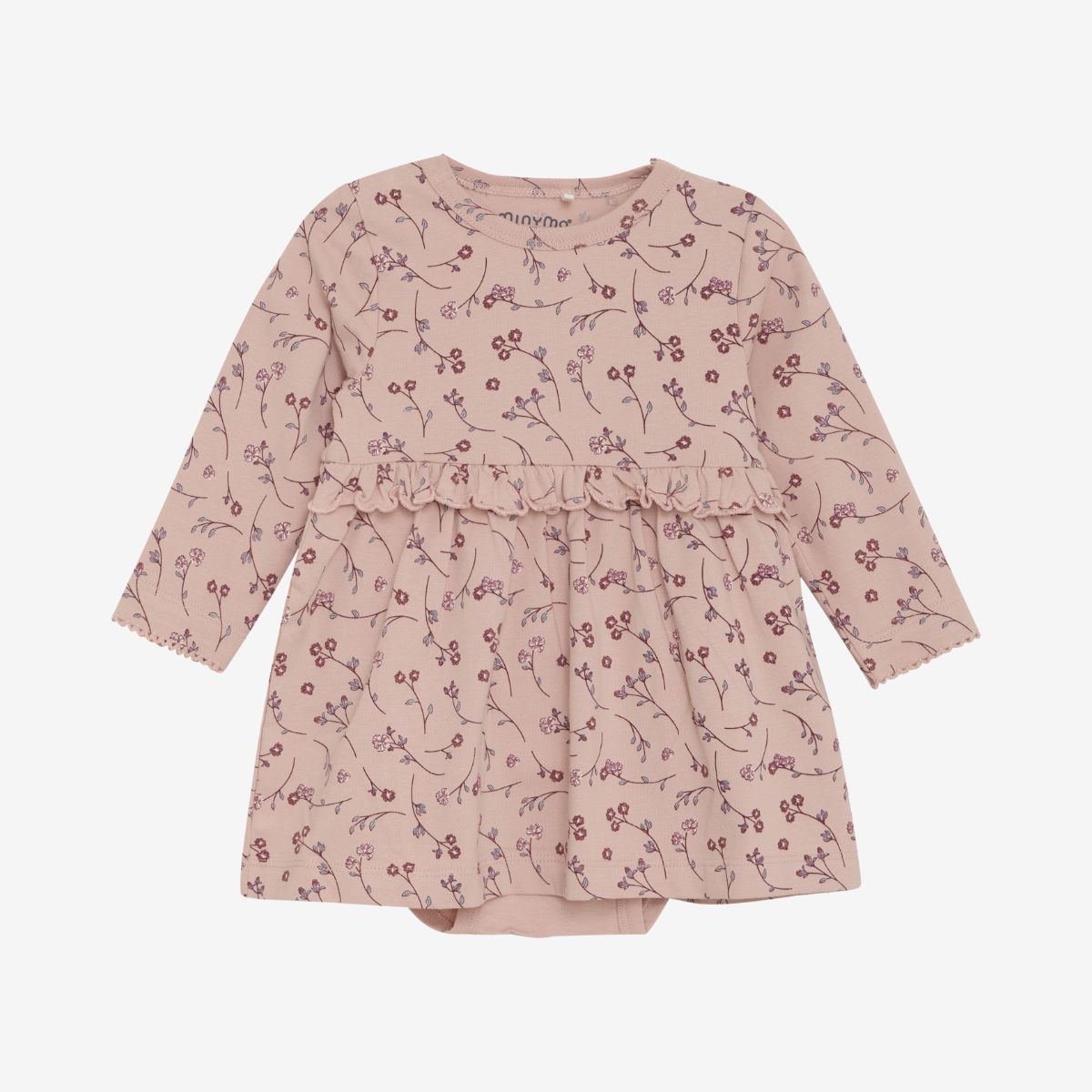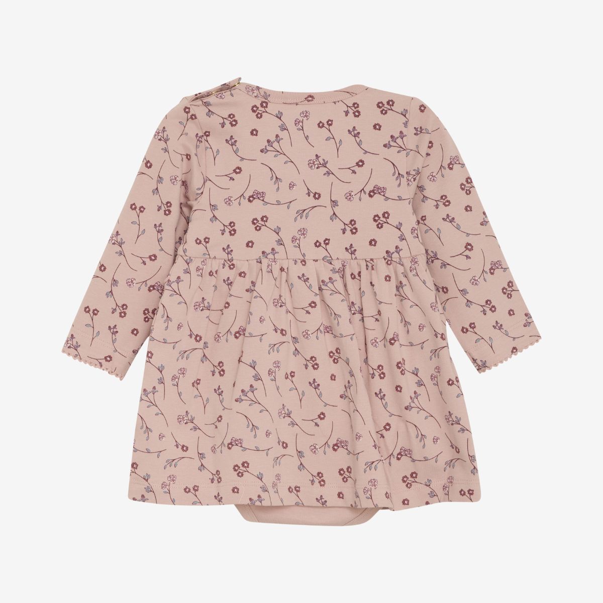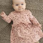 Long-sleeve dress with an all-over print and elegant frills at the waist, creating a feminine and stylish look.