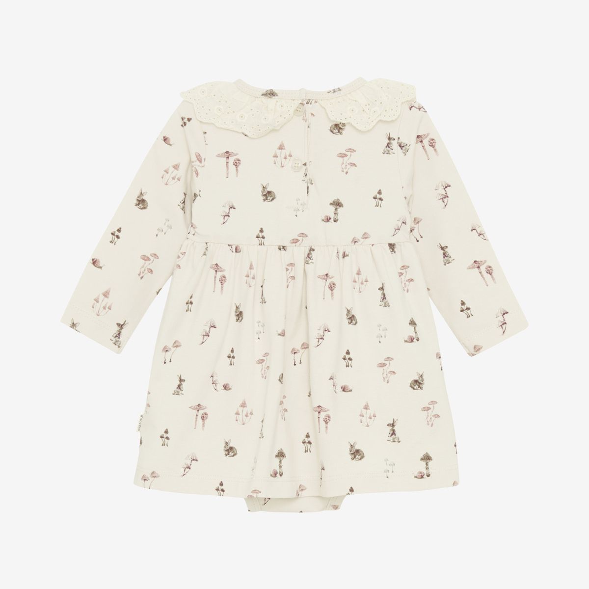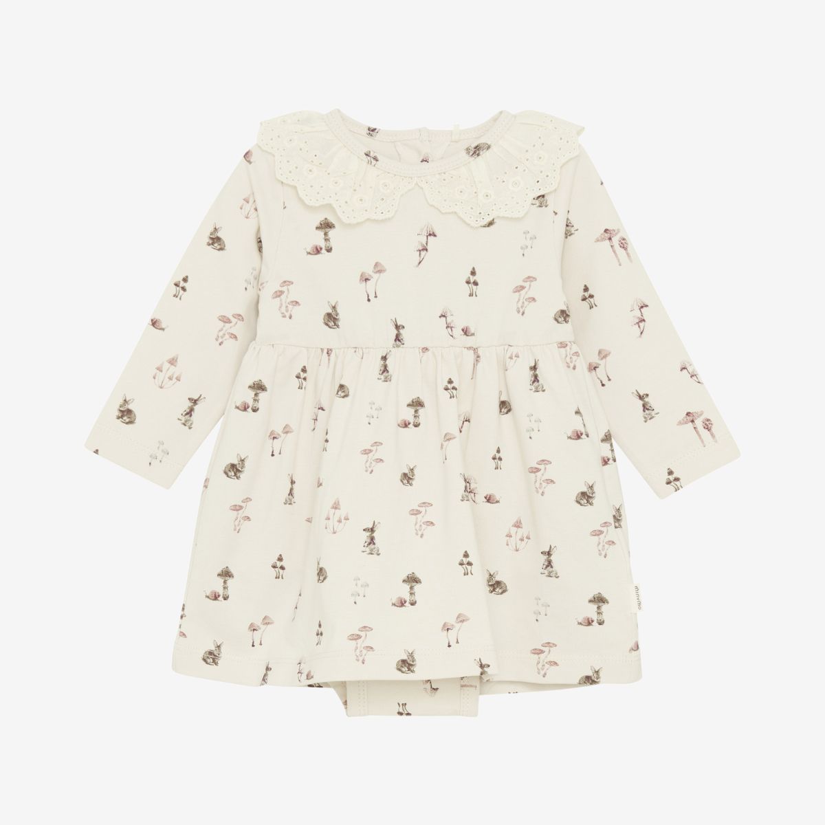 Long-sleeve dress with an all-over print and a beautiful broderie anglaise collar. The dress is made from a soft and comfortable fabric, perfect for special occasions.