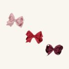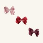 Beautiful teaHust and Claire bow hair clips sold in a 3-Pack in pink, red and purple grosgrain. Hust and Claire hair bows are Fast to the hair with a metal buckle. Dimensions: Length: 10.5 cm