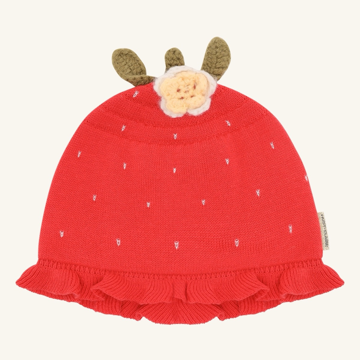 A charming addition to any summer outfit, this hat offers both style and sun protection. Featuring a playful strawberry design, it’s finished with a delicate ruffle trim.