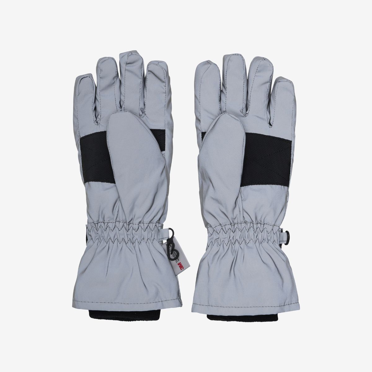 Reflex gloves from Minymo. The gloves keep the child’s hands warm and dry. The gloves have elastic straps on the inside and close with a velcro strap on top. The gloves are wind- as well as waterproof.