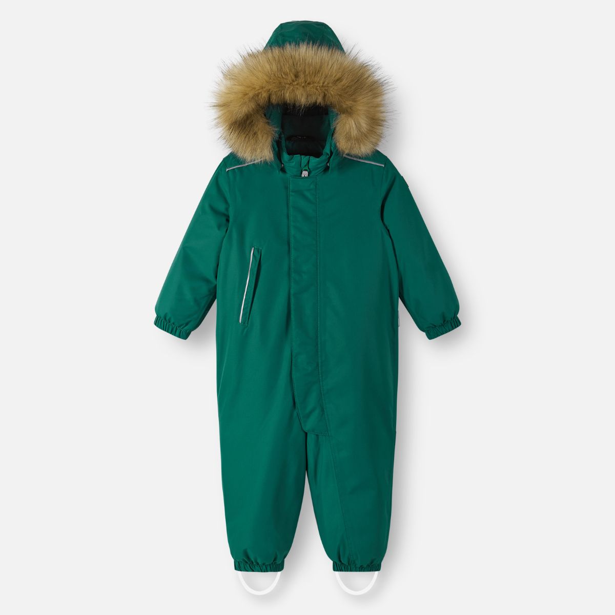 Reimatec Gotland kuldagallinn er mjög hlýr og góður galli og hentar vel fyrir veturinn. Gallinn er vind- og vatnsheldur, hann er úr slitsterku efni og allir saumar eru einnig vatnsheldir. Gott endurskin er á gallanum og hægt að taka hettuna af með léttum smellum, þannig að ef hettan festist í einhverju smellur hún auðveldlega af. Sílikon teygjur eru að neðan svo að skálmarnar á buxunum fari ekki upp og verndar litla fætur frá kuldanum.