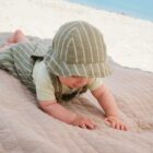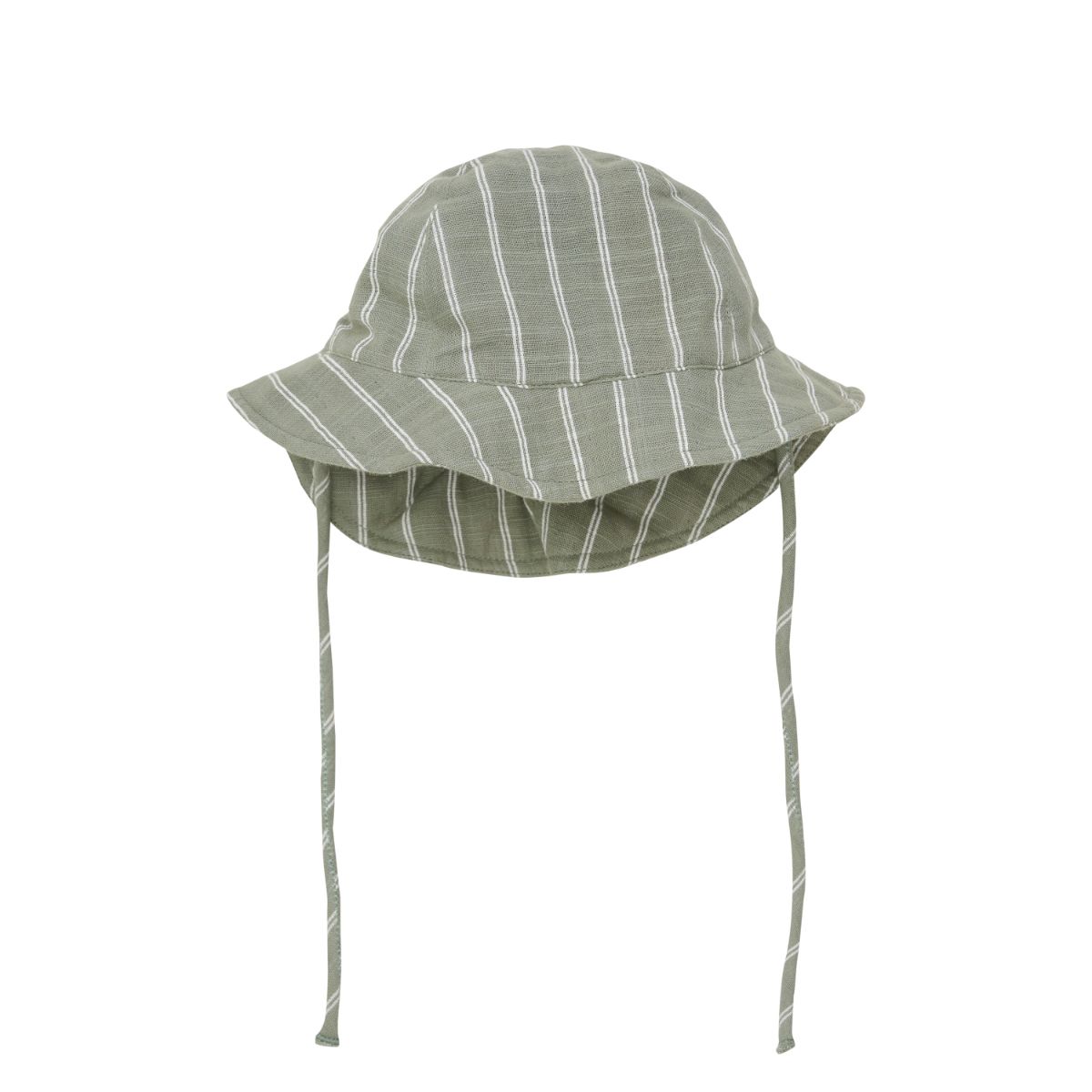 Nice striped summer hat from Minymo. The hat is made of 100% cotton and has nice stripes all over. A little elastic inside, which ensures a comfortable and individual fit. The straps can be tied together so that the hat does not fall off.