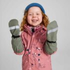 Unlined kids’ waterproof mittens made from a flexible and PVC-free material. These unlined kids’ waterproof mittens are made from a flexible, PVC-free material. The welded seams of these Reima rain mittens help keep little hands dry no matter how many puddles need to be splashed in! The elasticated band with a snap button on the wrist creates a snug fit.