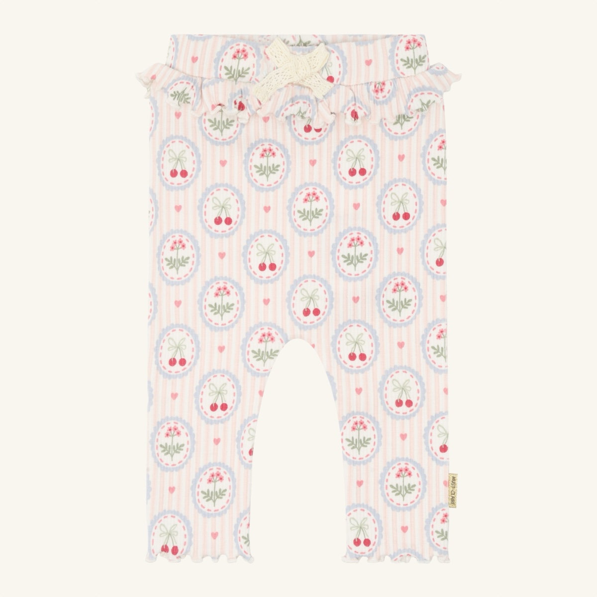 Designed for comfort and unrestricted movement, these lightweight pants are perfect for active kids. The flexible material ensures a great fit, while the playful design adds a touch of fun to any outfit. Ruffled trim at the waist and ankles completes the look.