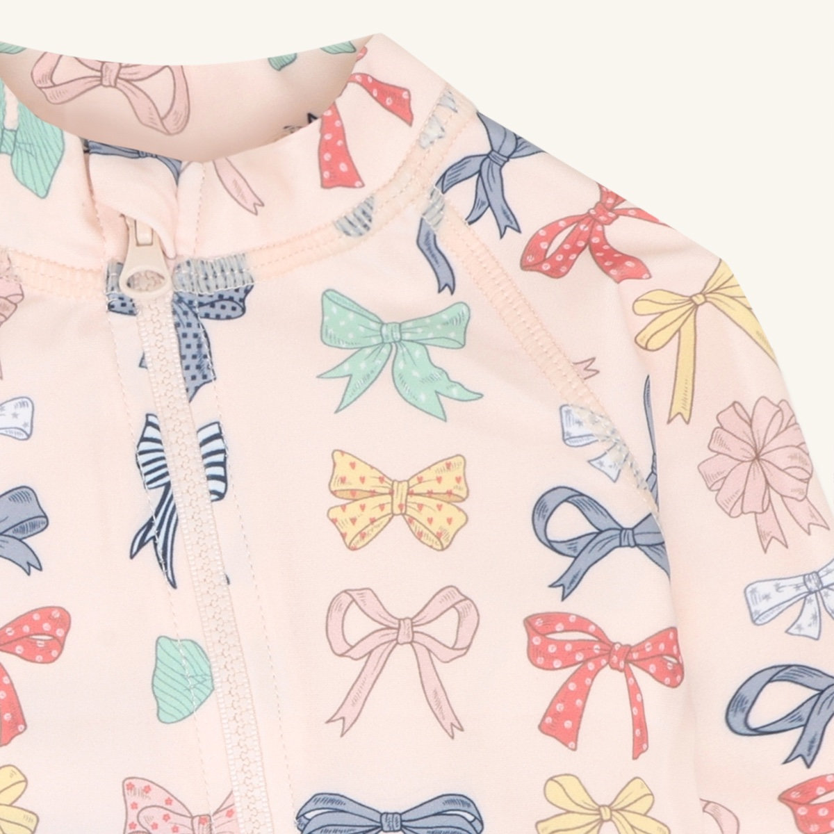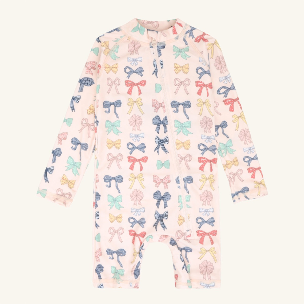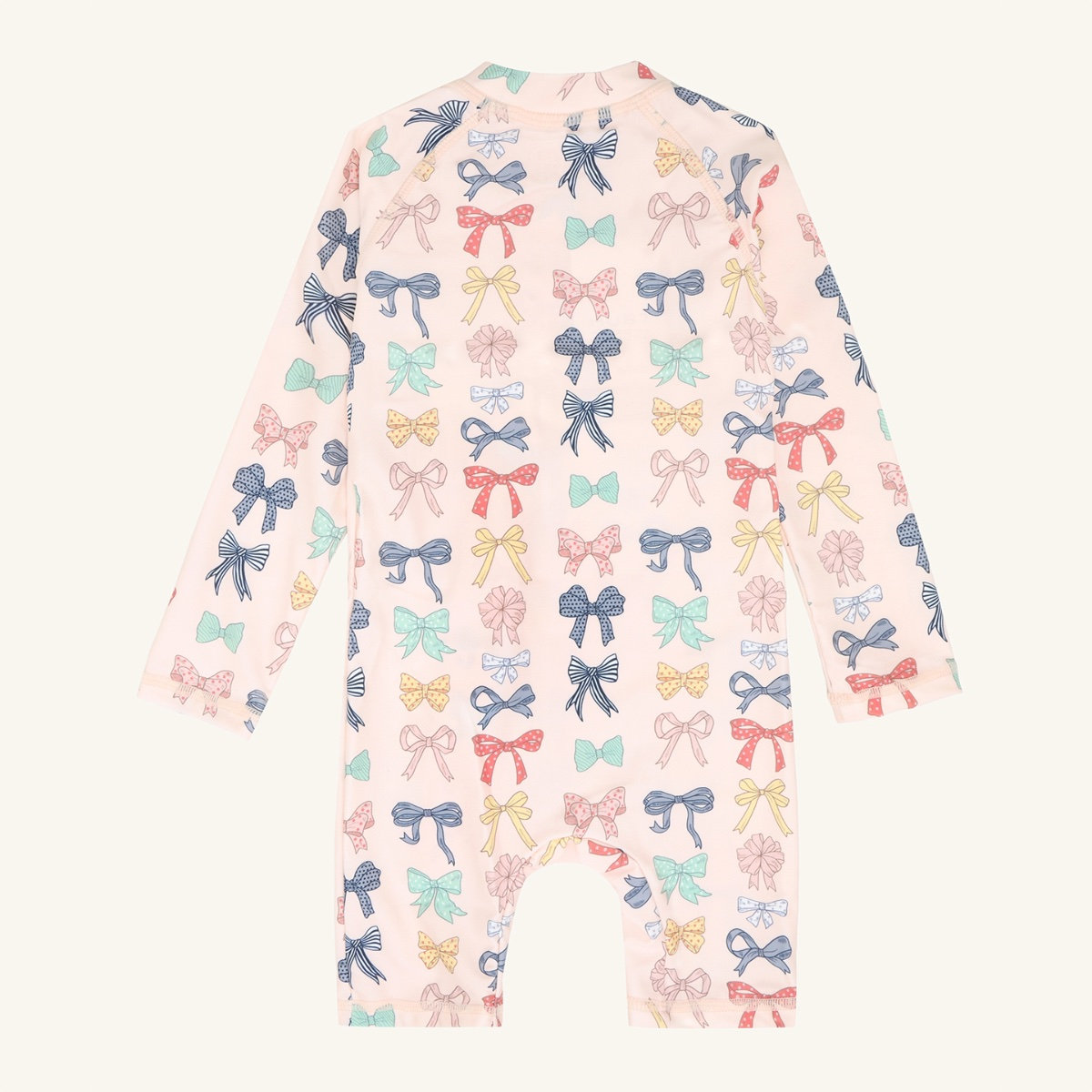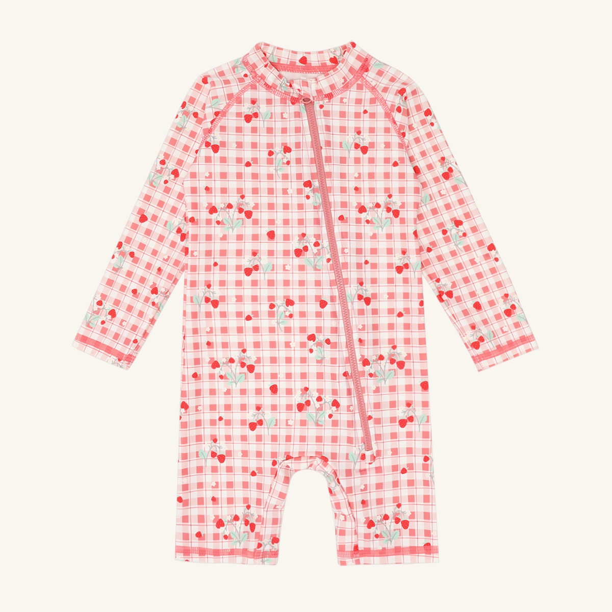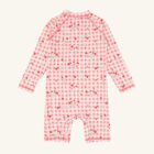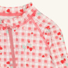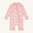 Long-sleeved swimsuit in stretchy polyester. With an asymmetrical zip at the front from the neck towards the left leg. This garment comes in a choice of two designs. The swimsuit has a UV50+/UPF50 filter. This product is made from 83% recycled polyester. Oeko-Tex 100® certified.