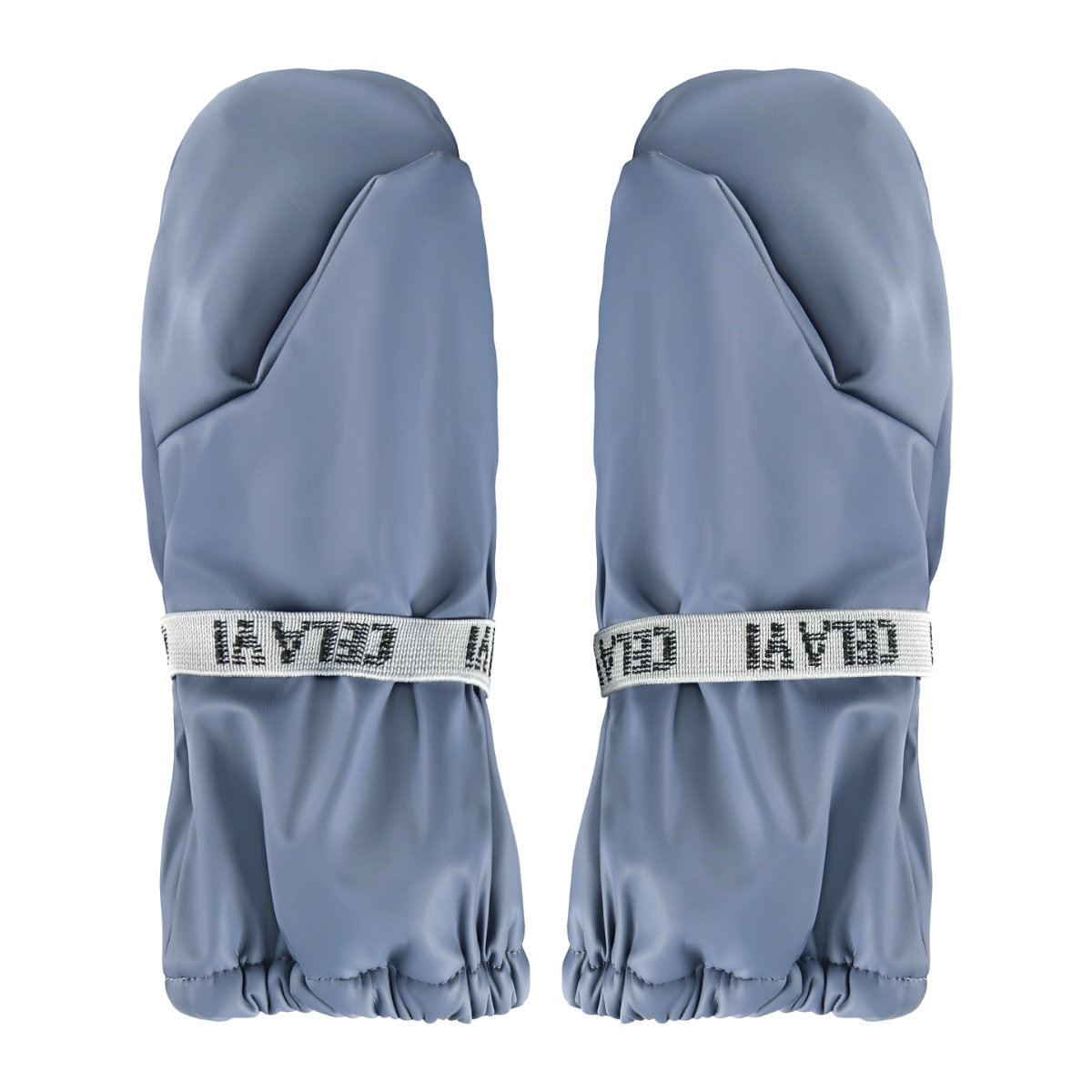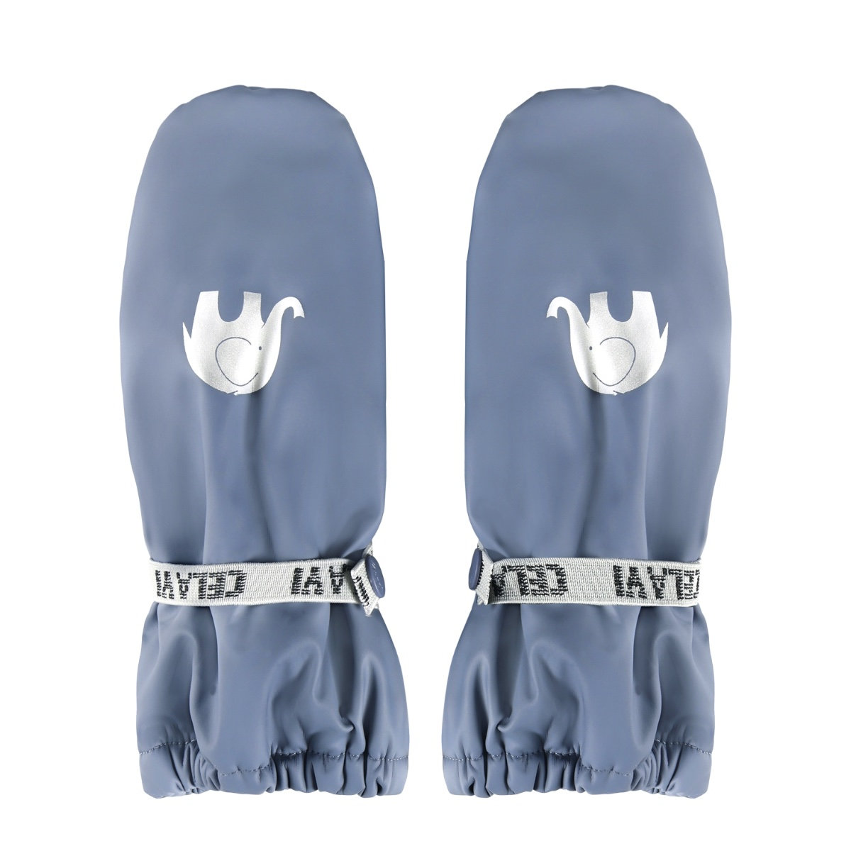Practical and warm PU mittens. The mittens have elastic band at the wrist and closes by snaps. Reflex in the CeLaVi elephant logo. They are practical and good for the children when playing in wet sand because they are waterprof.
