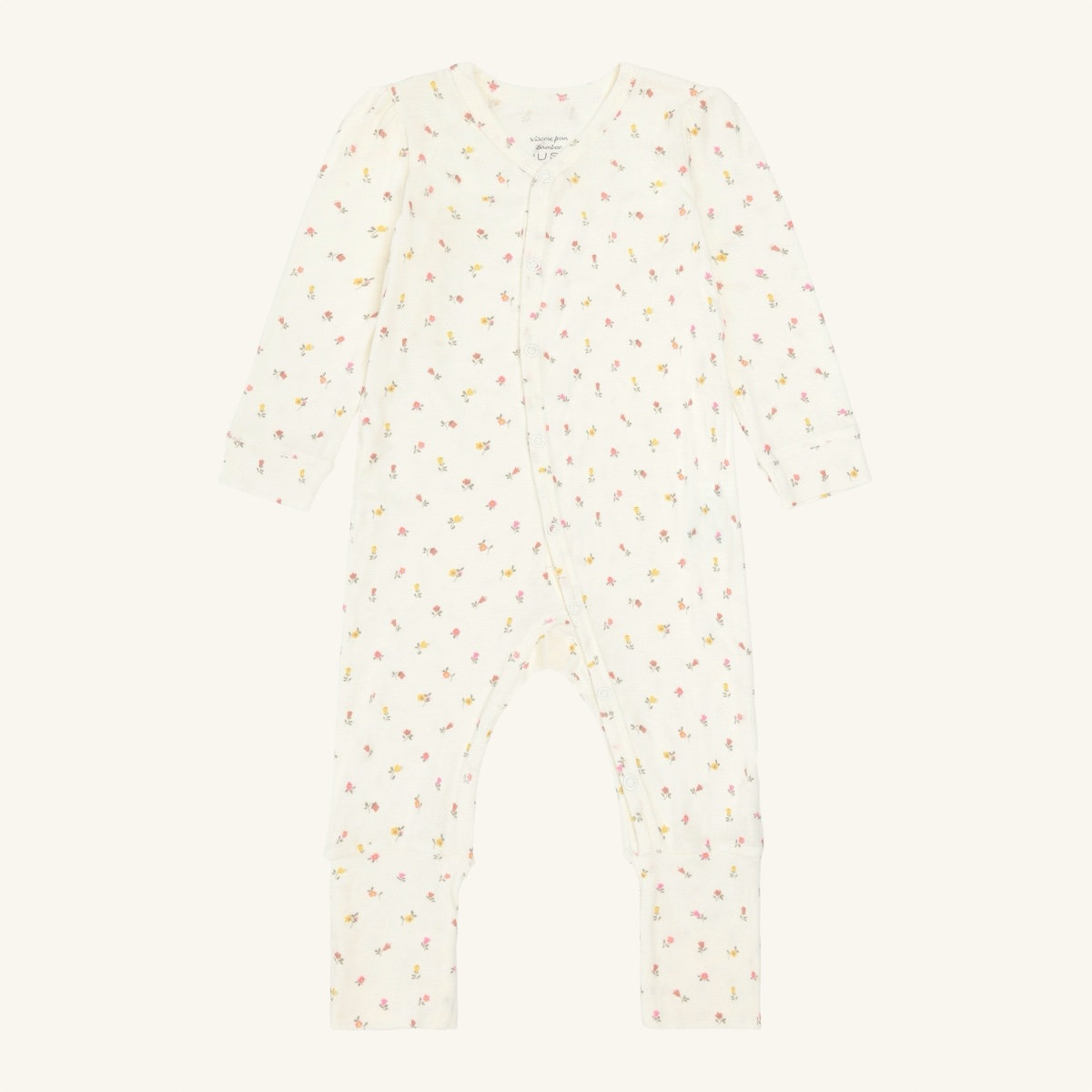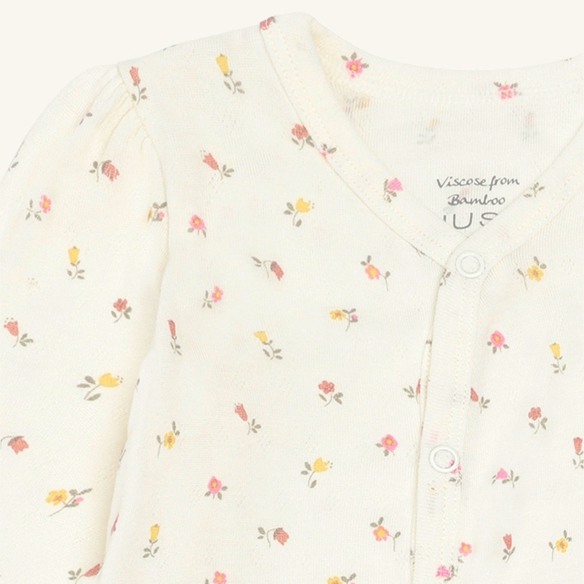 The HUST & CLAIRE Baby Romper HCMulle is the perfect pajamas for your baby. Made from soft, stretchy bamboo viscose, it offers the highest wearing comfort. With a cute floral print, it is not only practical but also visually appealing. The asymmetrical button closure makes it easy to put on and take off, while the foldable feet can be used as socks. This romper is also Oeko-Tex 100 certified.