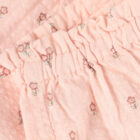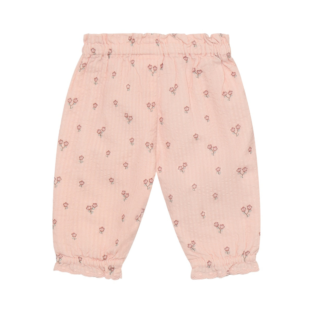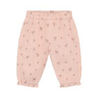 Pants from Minymo. The pants have an all-over print. They are loose around the legs and have elastic at the waist and ankles. Additionally, they feature a wavy hem at the ankles.