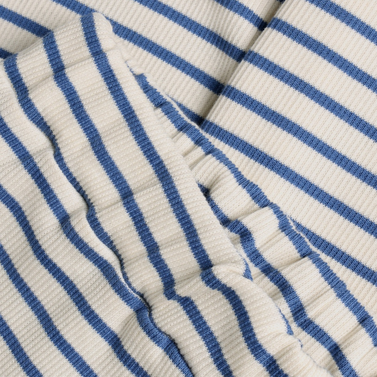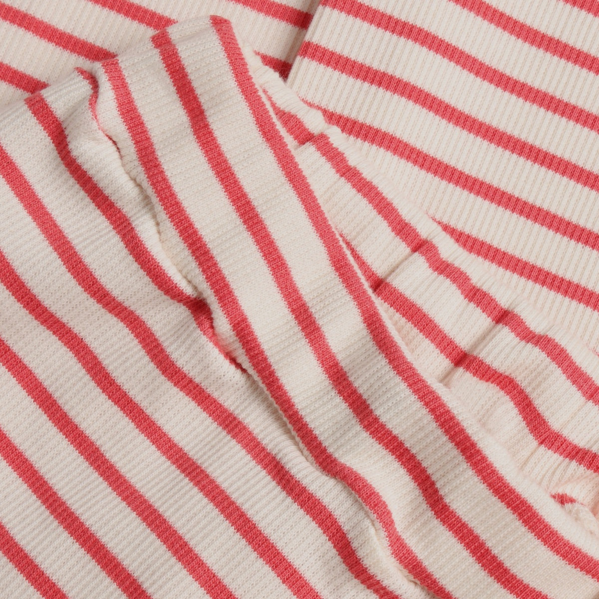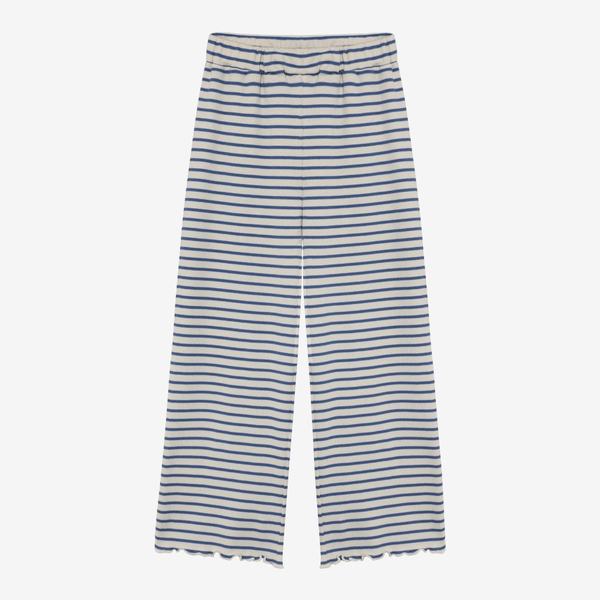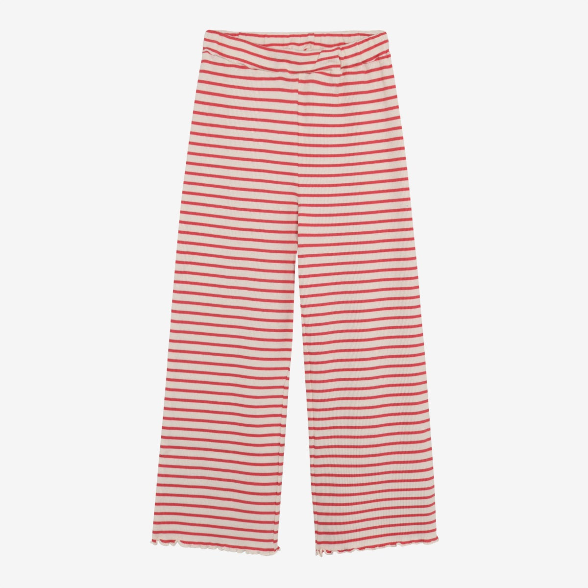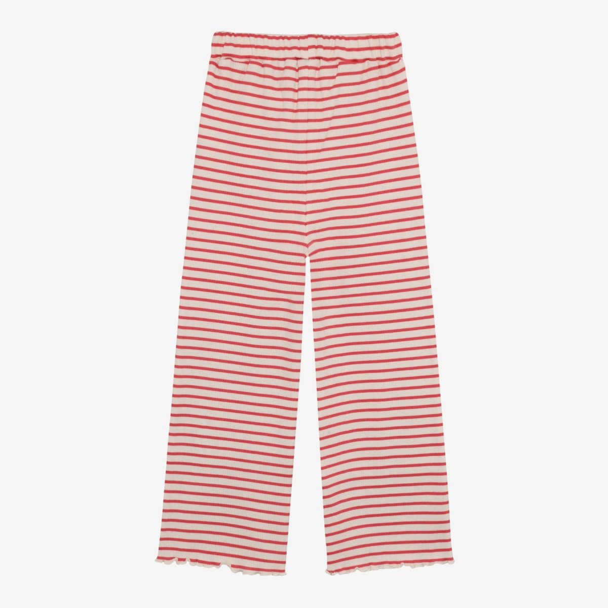Ribbed trousers from Minymo. The trousers are made from striped material and feature an elastic waistband as well as a wavy edge at the leg openings.