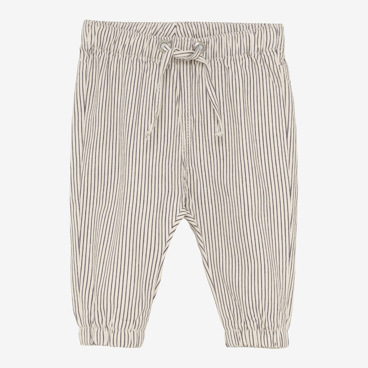 Pants from Minymo. The pants feature a striped all-over print. They have elastic at the waist and ankles. Additionally, they have a drawstring at the waist. The pants are made from a cotton blend. Certified acc. to OEKO-TEX® STANDARD 100 Cert. No. 2276-364 DTI