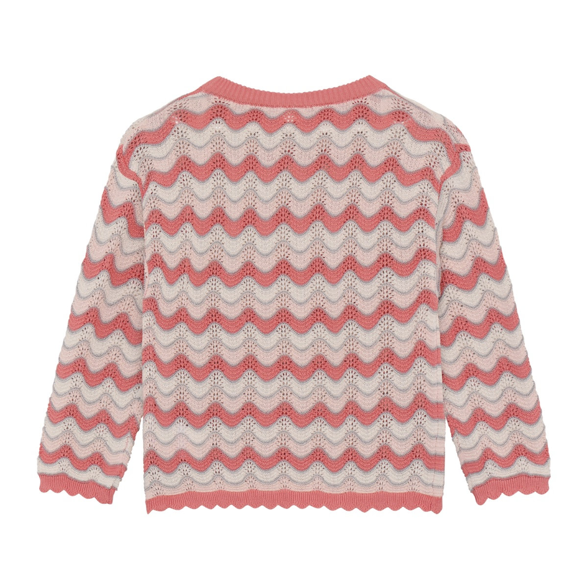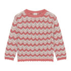 Knitted sweater from Minymo. The sweater has an all-over striped print. The hem and sleeve edges are wavy. The sweater is made of a cotton blend.