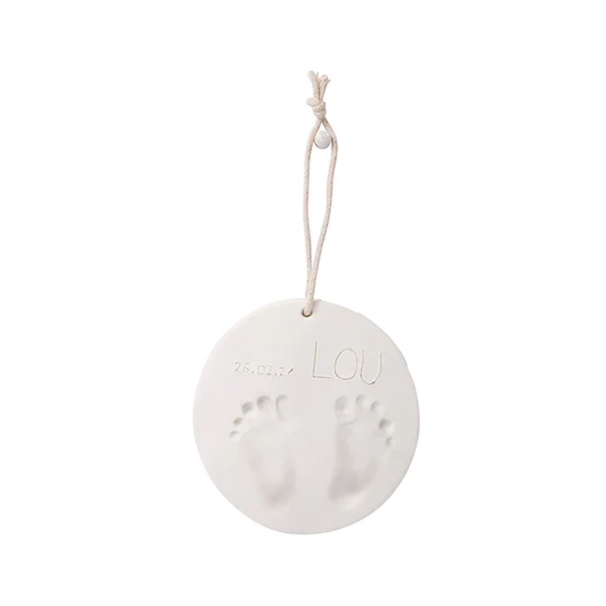 - This charming memento features all the materials you need to create an adorable imprint of your little one’s hands or feet.