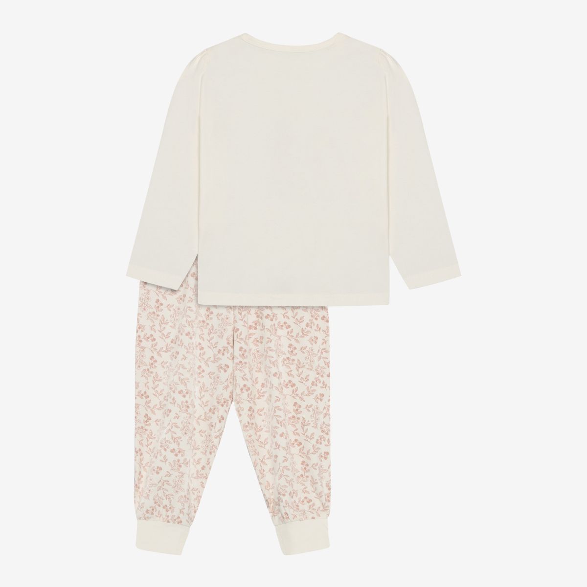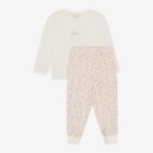 Pyjama made in stretchy single jersey. The set has a pair of all-over-printet pants with rib at the ankles and elastic at the waist plus a solid colored long-sleeved t-shirt with ribbing at neckline and a front print at chest.