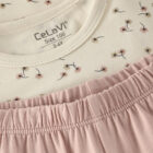Pyjama set from CeLaVi. The pyjama set includes a blouse with an all-over print and solid-colored trousers. The CeLaVi blouse has long sleeves. The trousers feature a practical elastic waistband as well as elastic cuffs at the bottom of the legs. Certified acc. to OEKO-TEX® STANDARD 100 Cert. No. 2276-364 DTI