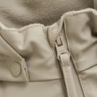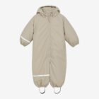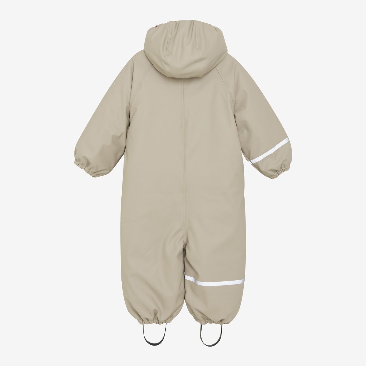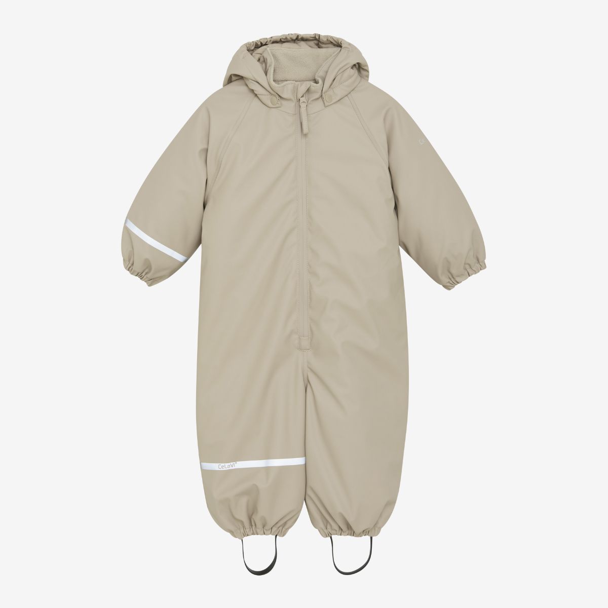 Solid colored winter rainsuit made in strong durable PU from CeLaVi. Tested water column pressure of 10,000 mm. The suit opens at the front with a waterproff zipper with chin protector and double windpole. The chin protector makes sure that the zipper feels soft under the chin. The wintersuit has warm padding and a detachable hood. Adjustable rubber foot straps that can be put under the boots so that it stays in place. Reflective details in several places on the suit. It has a name tag inside.