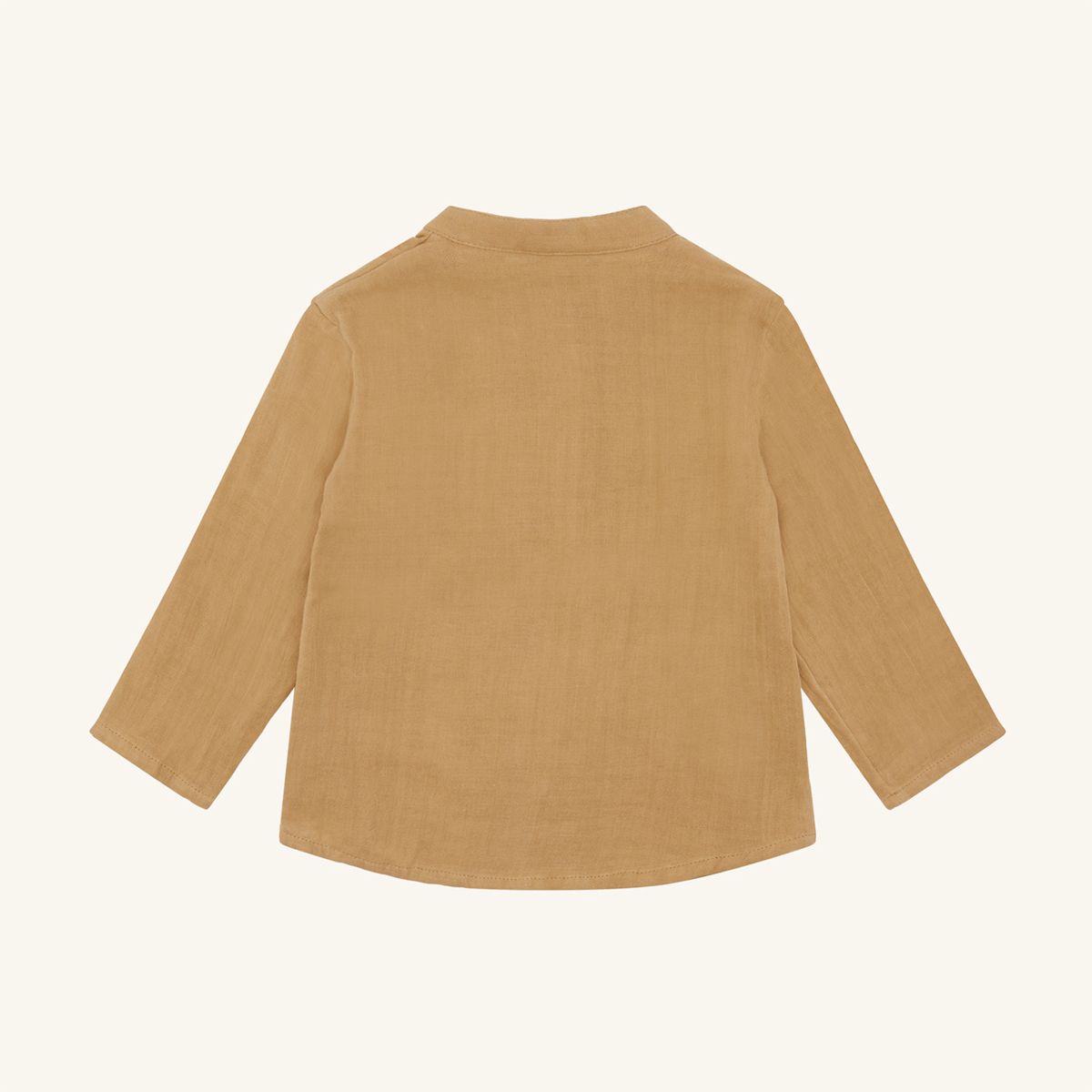 Shirt in woven cotton with a mandarin collar and a faux welt pocket on the left chest. Buttons at the front. This product is made from 100% organic cotton.