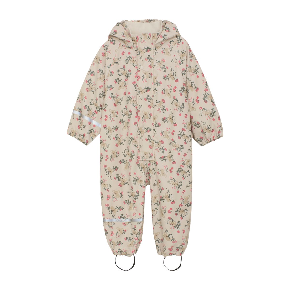 Beautiful rain suit in PU from CeLaVi with all over print. There are narrow reflective stripes around one sleeve and one leg. The upper arm and hood have reflective logo prints. The CeLaVi rain suit has a removable hood, which is fixed with a press-stud neck collar. The face opening on the hood, the sleeves and the waist have elastics for a better fit. There are practical and adjustable elastic straps to put under the footwear. The rain suit closes at the front with a zipper and an external wind pole that closes with snaps.