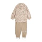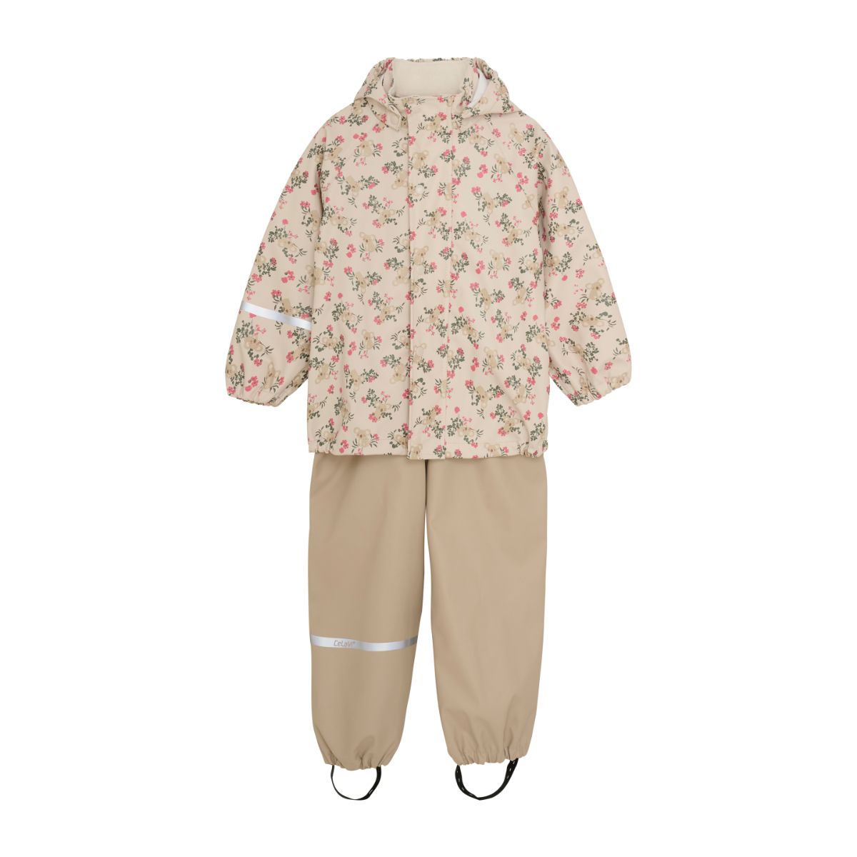 Nice rainwear set in PU from CeLaVi, consisting of a rain jacket in all-over print and a rain pants in solid-color. There are narrow reflective stripes around one sleeve and one leg. The upper arm and hood have reflective logo prints. The CeLaVi rain jacket has a removable hood that fastens with snaps. The face opening on the hood, the sleeves and the waist have elastics for a better fit. The jacket closes with a zipper and an external wind pole that closes with snaps.