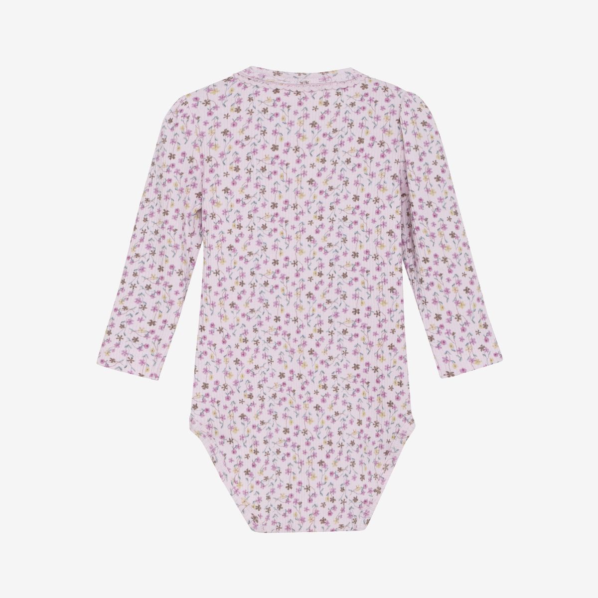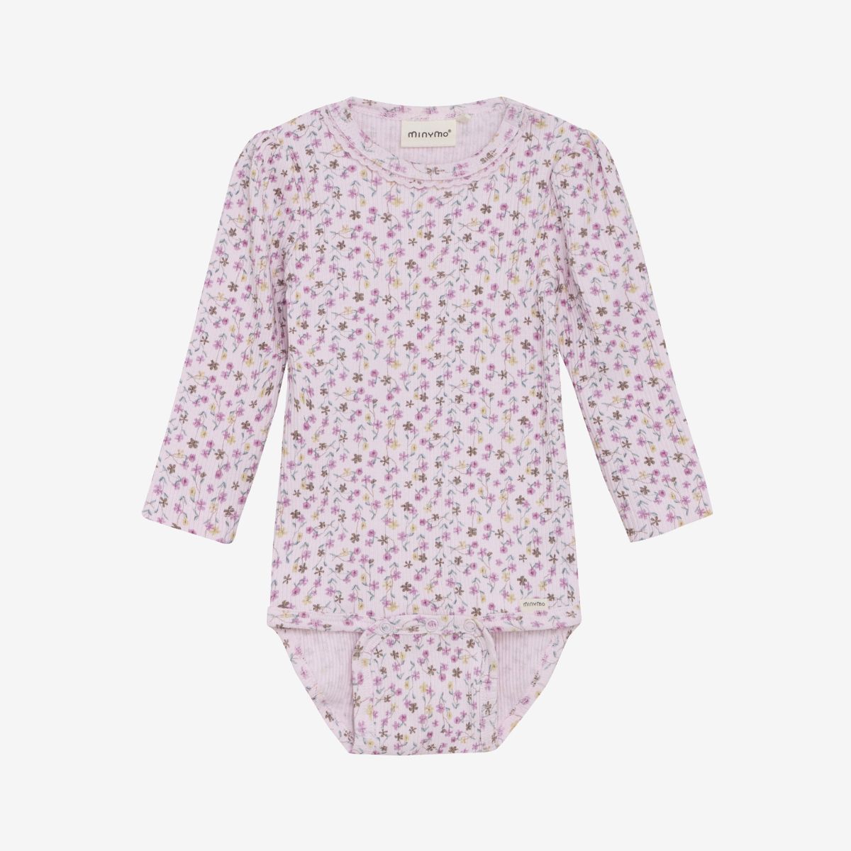 Long-sleeved bodysuit with cute flower print from Minymo. The body is made of a soft cotton blend that feels comfortable against the skin. The body closes with snaps between the legs. Minymo logo at the leg.