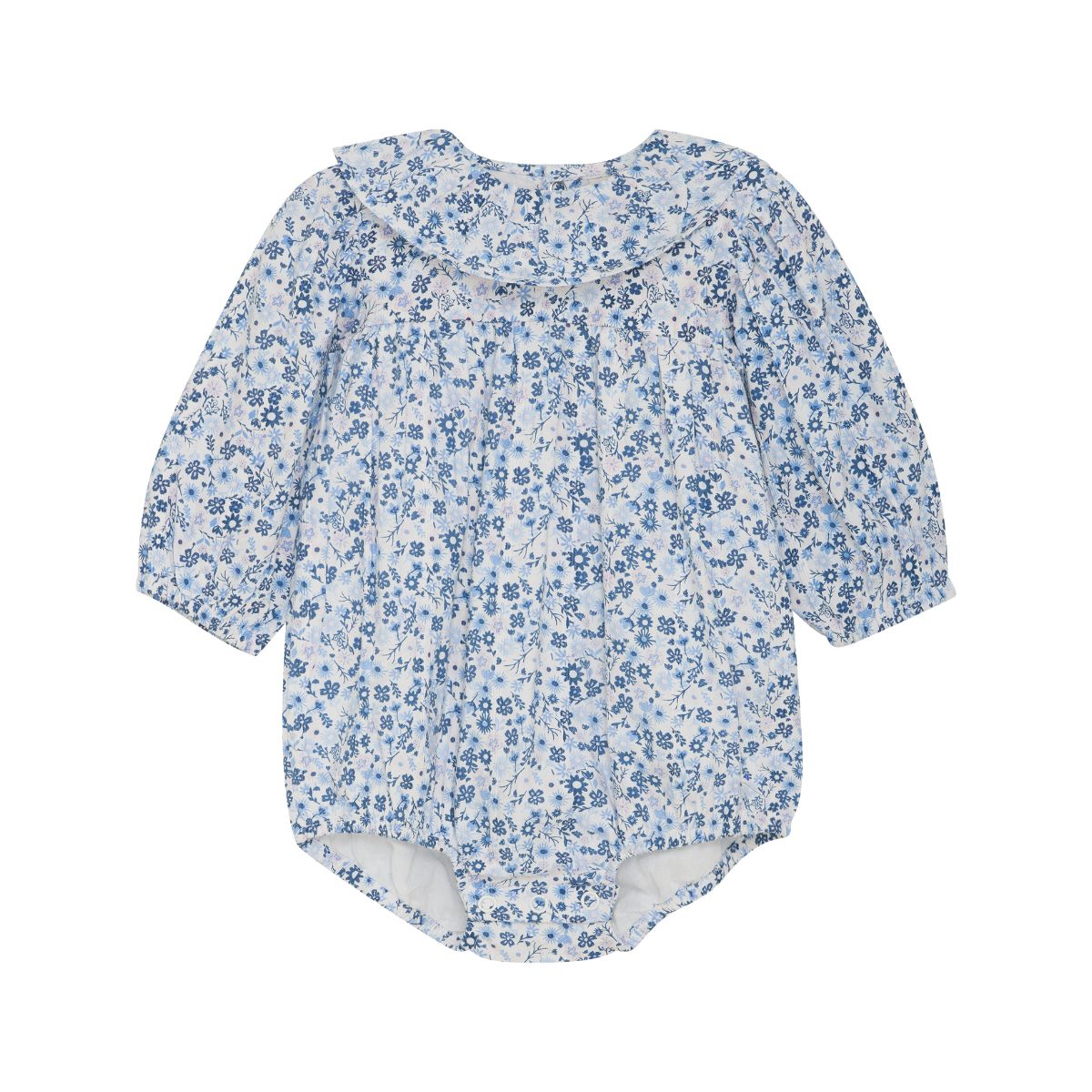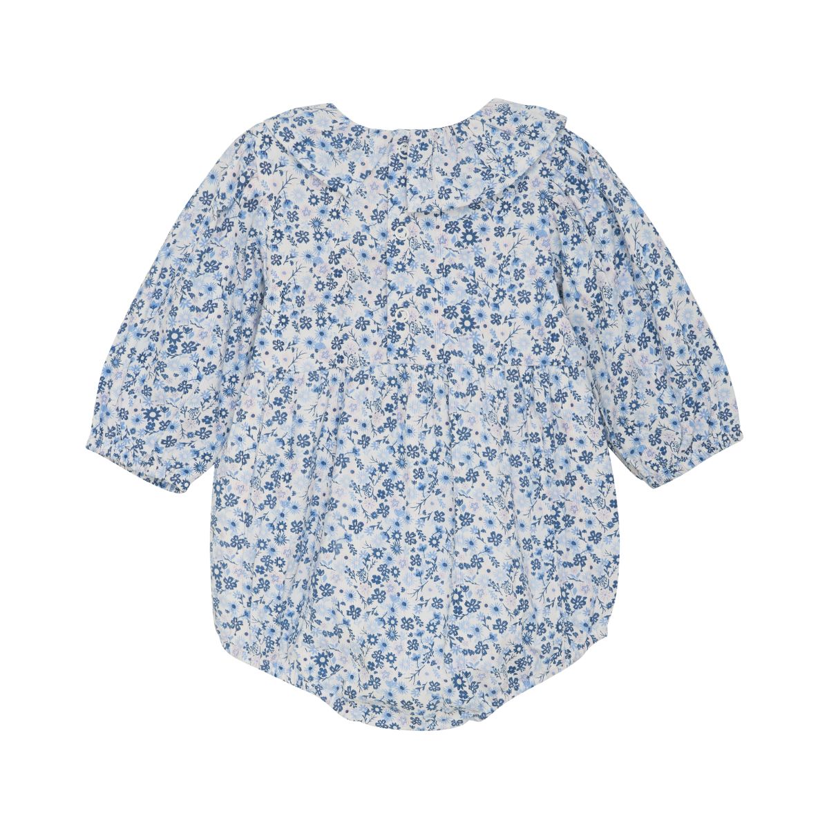 Beautiful long-sleeved body with allover print from Minymo. The body is woven in 100% cotton and has a nice allover floral print. Fine collar gives a nice look. The body closes with press studs between the legs and at the back.