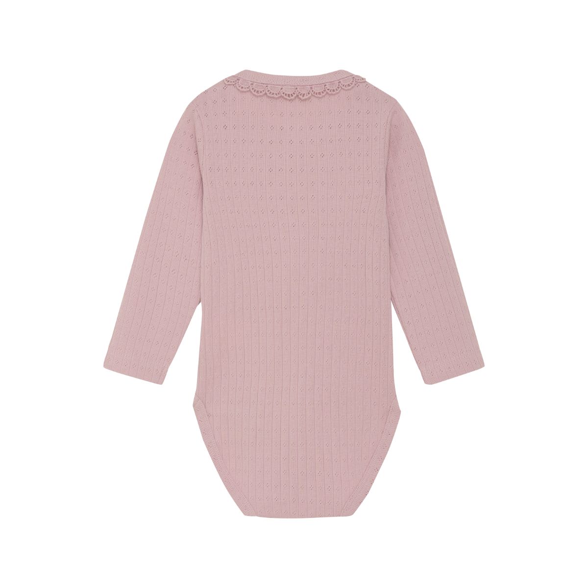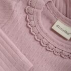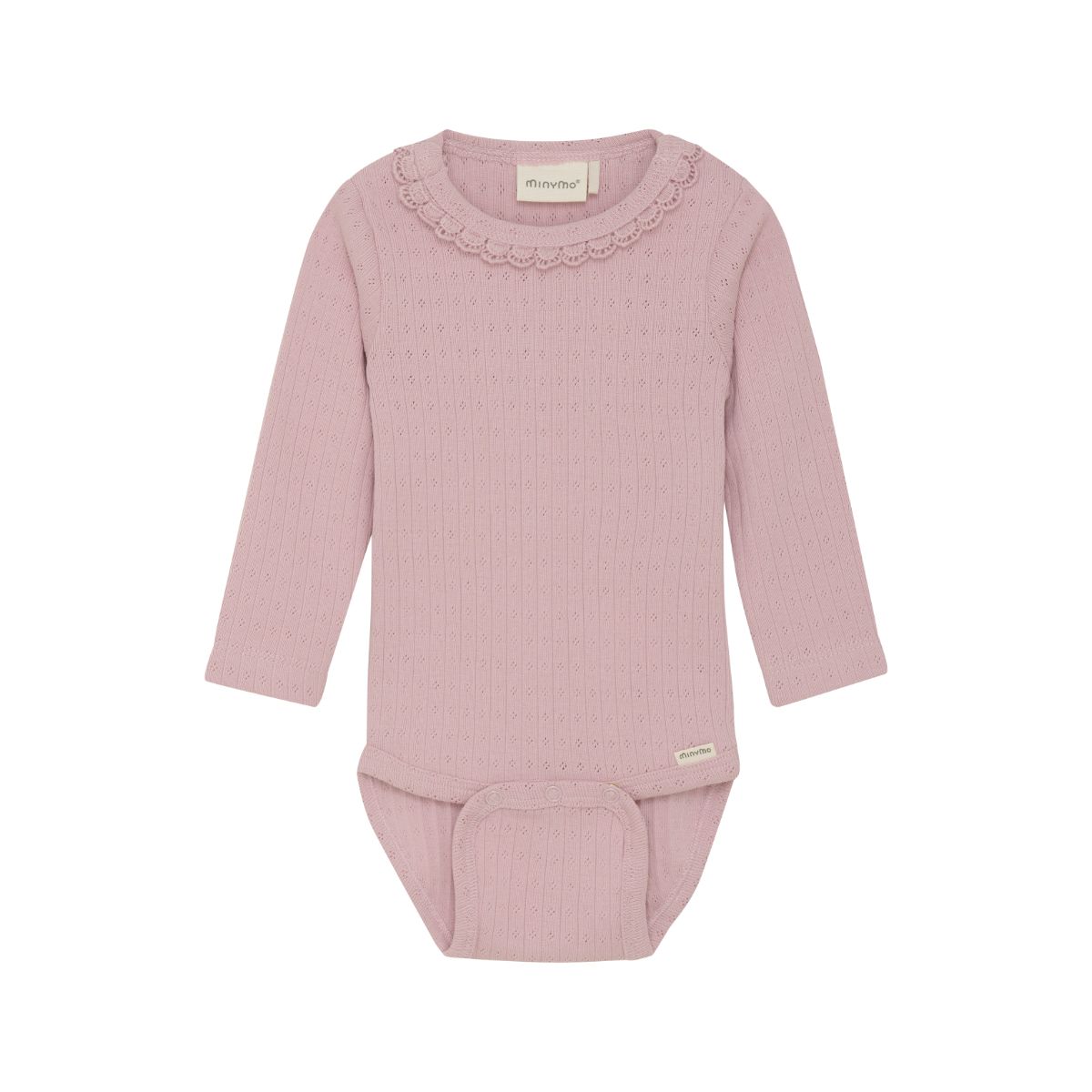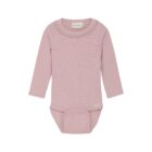 Nice long-sleeved body with allover print from Minymo. The body is made of 100% combed cotton, which is extra soft and feels comfortable on the skin. The body has a nice detail at the neck, which gives a nice look. Beautiful allover print with dots. The body closes with hidden snaps on the shoulder and snaps between the legs.