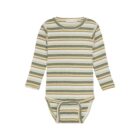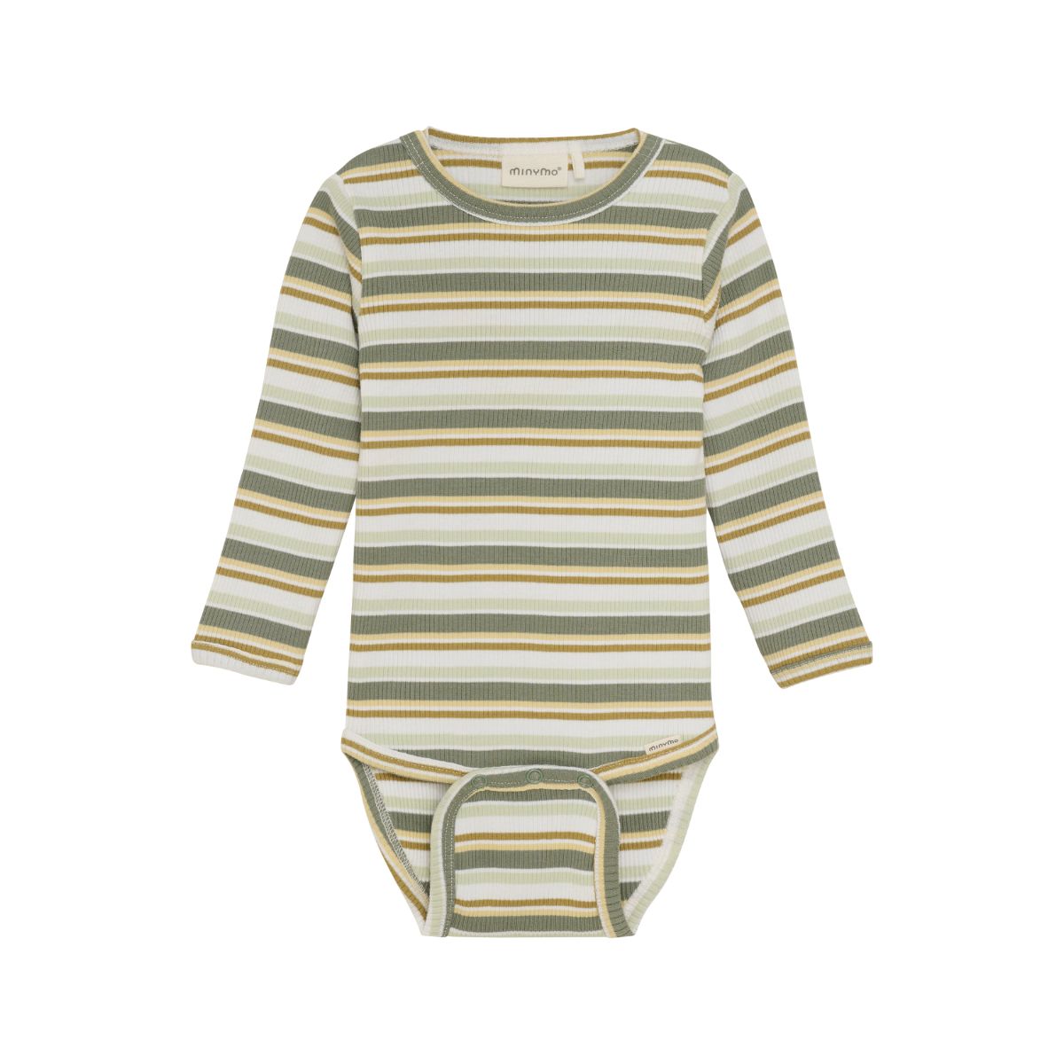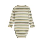 Cute Minymo bodysuit with long sleeves in a green and white striped design in a nice ribbed structure. It has a practical closure at the bottom and at the shoulders, which makes it easy to put on and take off for small kids.