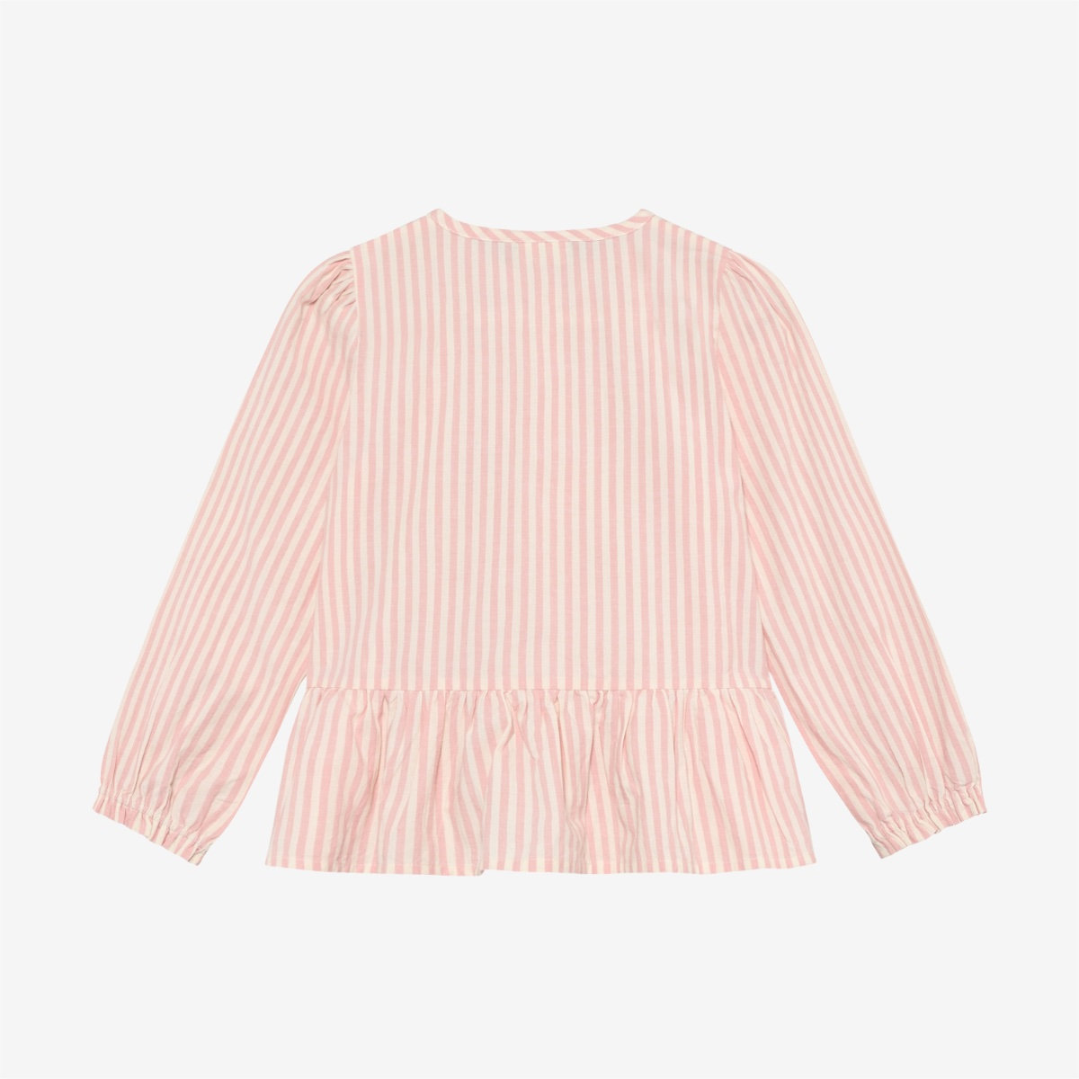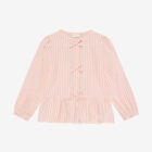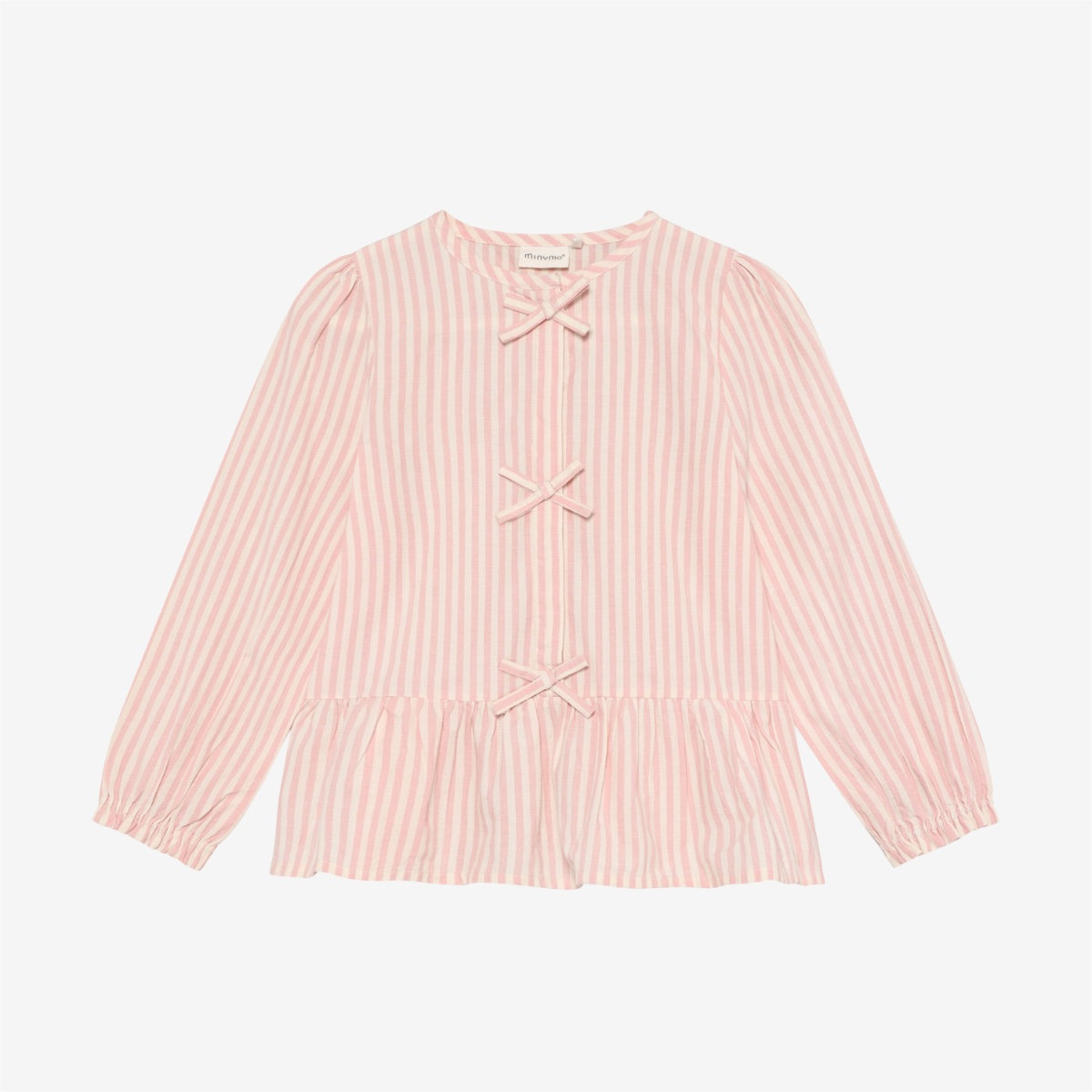 Striped top from Minymo with decorative bows along the front. The top features a round neckline, elastic sleeve ends, and a flared hem for a comfortable fit.