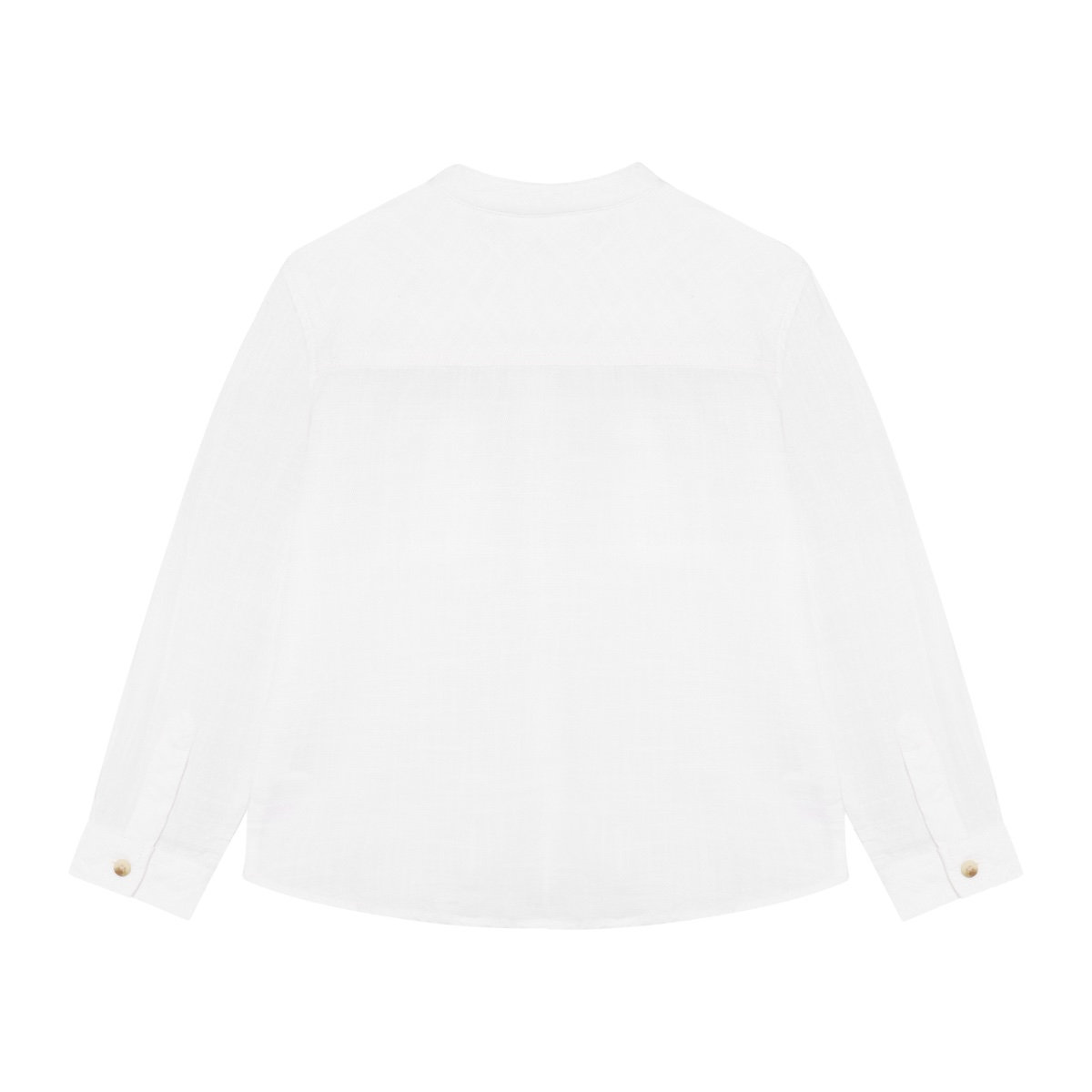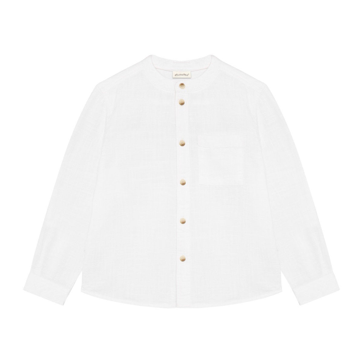 Long-sleeved shirt from Minymo. The shirt has a chest pocket and closes with buttons at the front. The sleeves can easily be rolled up and secured with a button and strap. It is made of 100% cotton.