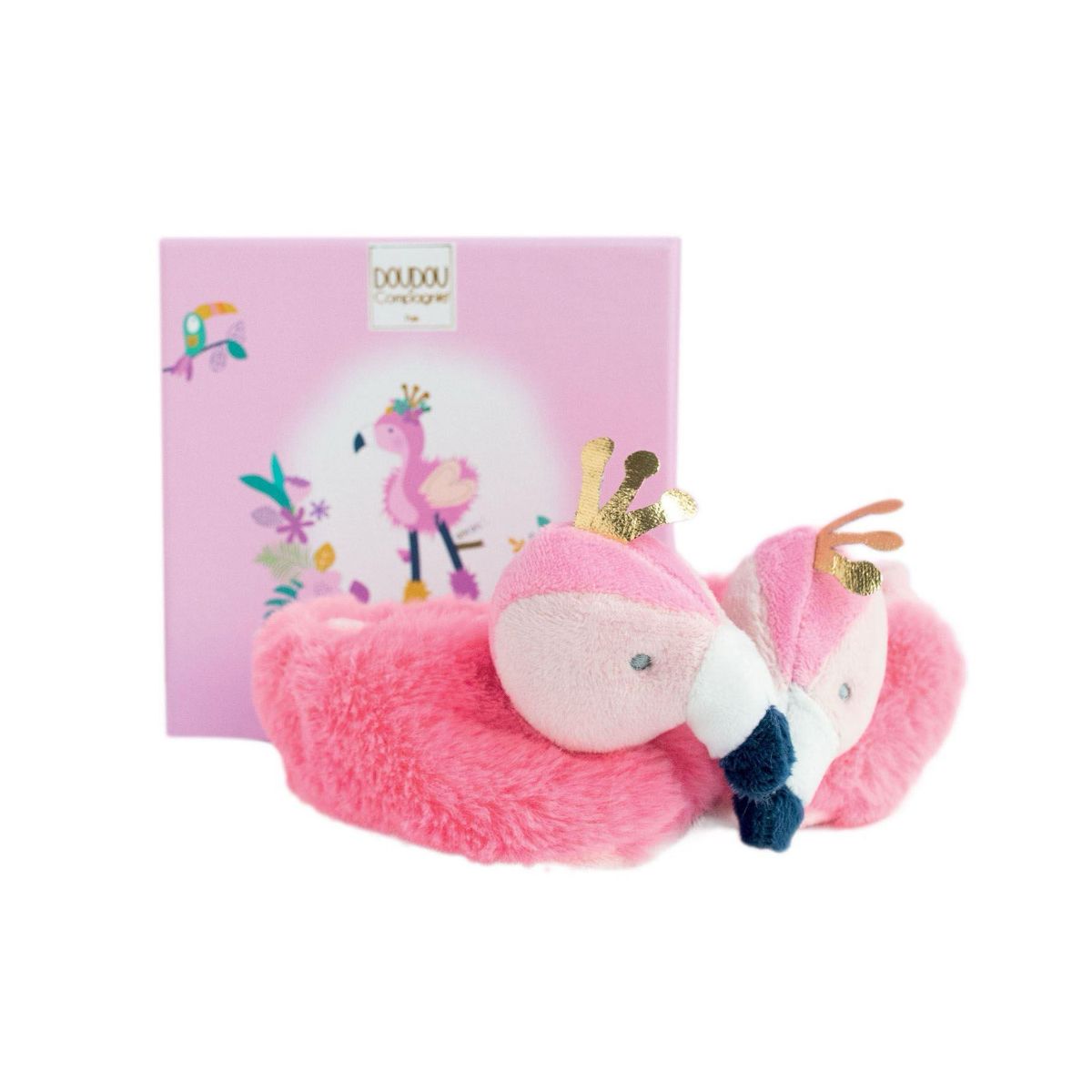 These little Tropicool pink flamingo plush slippers are adorable and play with the latest decor trends! Beautiful sunny colors, pretty mixes of soft materials and perfect design, they don’t forget to be playful with their glitter touches. These pink flamingo slippers are presented in a gift box.