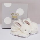 These little „Bonbon“ rabbit slippers will simply make you fall in love! Extremely soft and very pretty, they are also perfect for warming your child’s feet. The little bells will delight baby when they move their little feet.