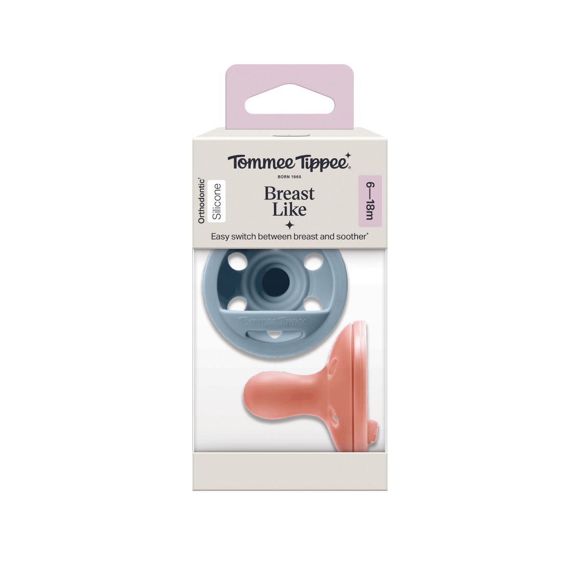 - Symmetrical orthodontic** design: Our Breast-Like dummy features a symmetrical silicone teat and with no ‘wrong’ side up, it will always be placed correctly in baby’s mouth.
