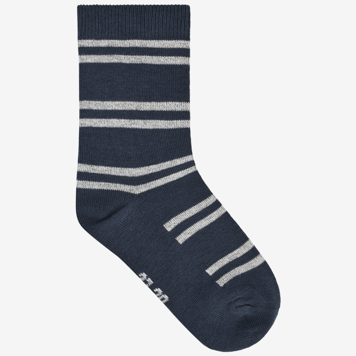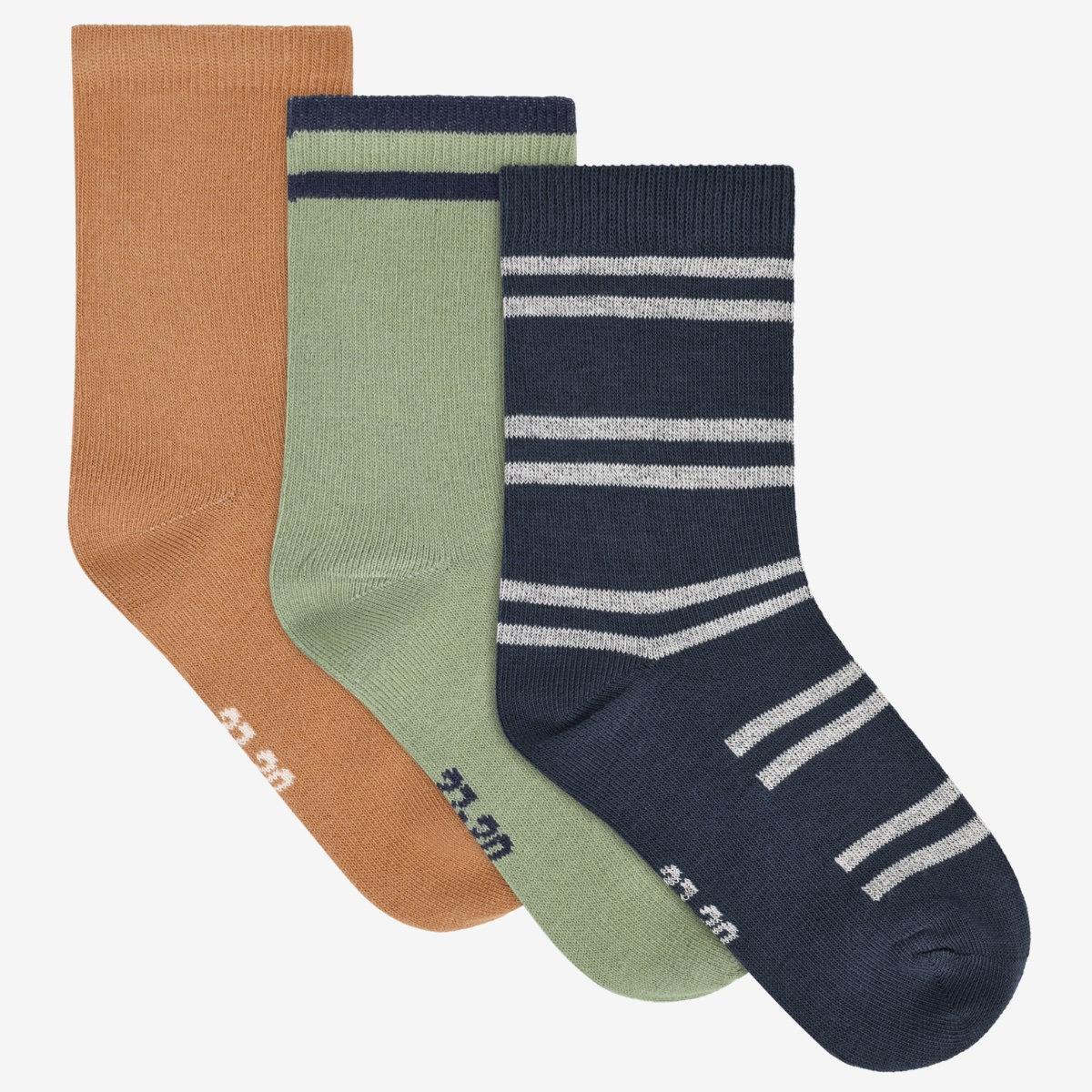 3-pack socks from Minymo. The pack includes 3 pairs of socks: two with front prints and one with contrast-colored stripes. Certified acc. to OEKO-TEX® STANDARD 100 Cert. No. 2276-364 DTI