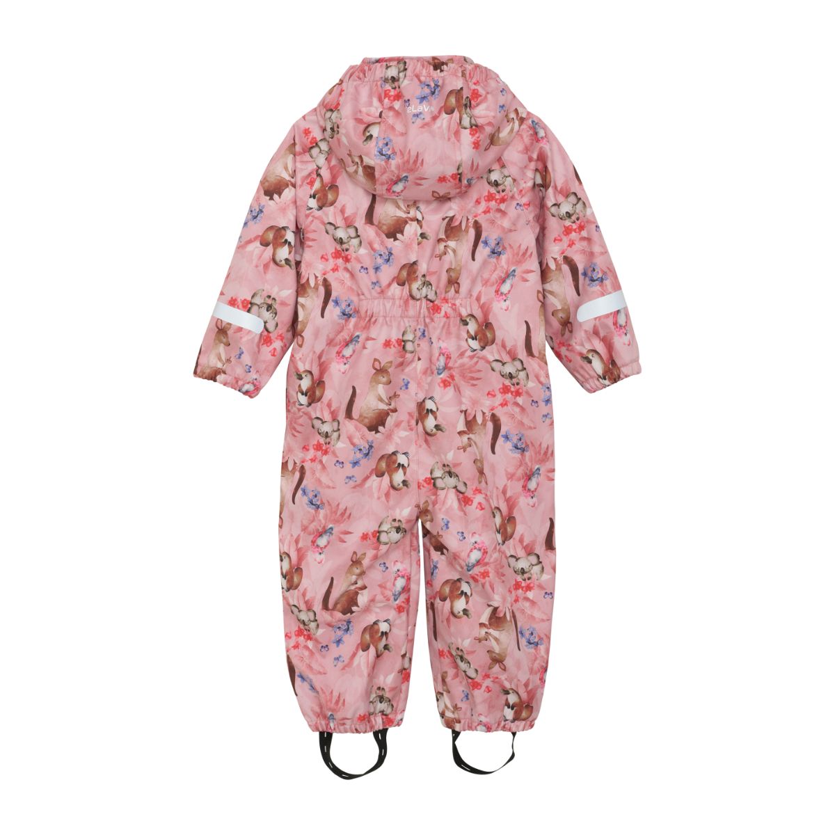 Cool and practical softhell suit with all over print from CeLaVi. The suit has a removable hood with snaps. There’s elastics at the sleeves, the ancles, at the back/the waist, and at the hood for a better overall fit. The suit closes with a zipper. Coated with BIONIC FINISH ECO. The softshell suit opens with a zipper from the neck opening down to the left trouser leg, and it has a chin guard and an internal wind pole. There are practical reflective stripes on the outer sleeves, and at the bottom of the right trouser leg there is a reflective print shaped like a koala.