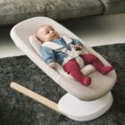 This baby Bouncer & Swing features a breathable fabric with a cotton top, machine-washable at 40°C (104°F).