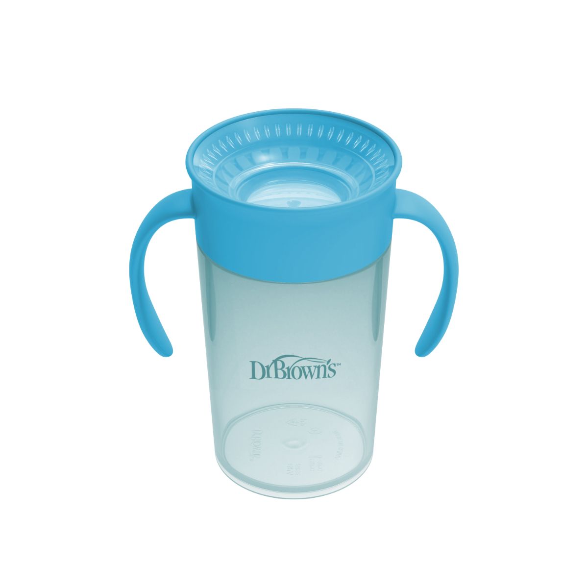 Pick Your Sip. Dr. Brown’s Straw to 360° Cup Set includes a lid with super soft silicone straw to help baby develop new straw-sipping skills. The soft silicone is gentle on baby’s sensitive mouth and is spill-proof! Then when baby is ready, switch to the Cheers360™ sippy cup lid. The 360-degree design lets baby drink from any edge, and the Sip and See clear silicone valve lets baby see inside without spilling for true leak-free learning. The Cheers360™ lid features handles designed that are easy for little hands to grasp and tilt while developing independent drinking skills. The translucent cup lets you see when it’s time for a refill.