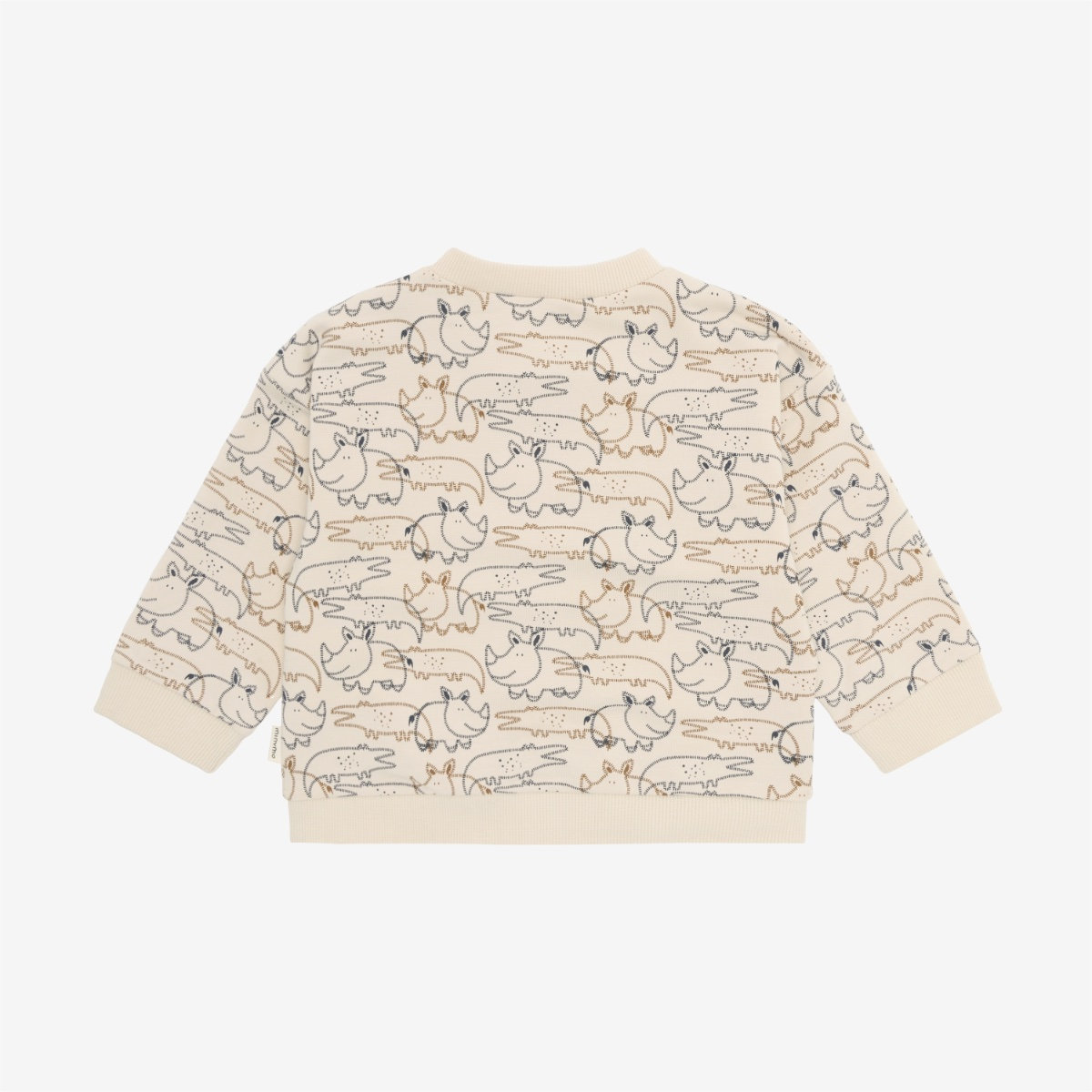 Sweatshirt from Minymo. The sweatshirt features an allover print. It has buttons by the collar on one shoulder. The edges are elastic and comfortable. The sweatshirt is made of a cotton blend. Certified acc. to OEKO-TEX® STANDARD 100 Cert. No. 2276-364 DTI